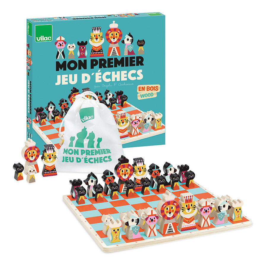 Barevné šachy pro nejmenší s dřevěnými figurkami zvířat. Lehce upoutají pozornost dětí a ty si tak snadněji osvojí princip hry. Figurky jsou uloženy v látkovém pytlíku. Balení obsahuje 32 dílků. Ilustrováno Ingelou P. Arrhenius. Hlavní vlastnosti: dřevěná herní