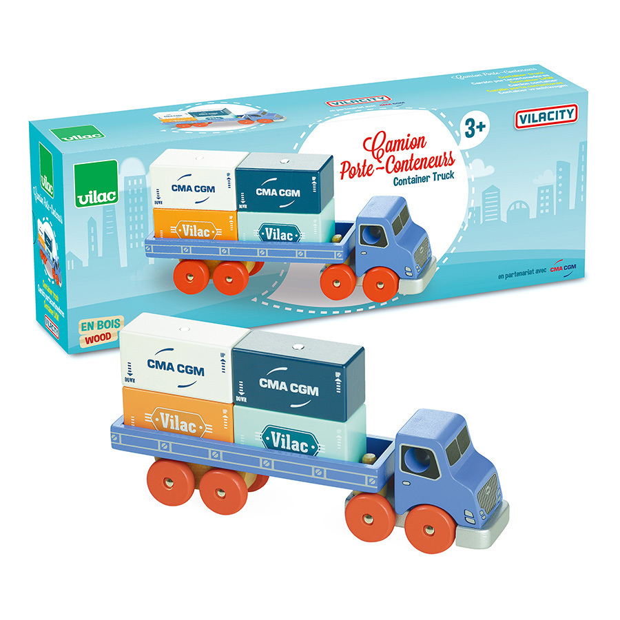 Dřevěný tahač s přívěsem a magneticky spojenými kontejnery, vyrobený ve spolupráci s čelní fracouzskou přepravní společnosti CMA CGM. Je součástí Vilacity kolekce a je se všemi jejími součástmi plně kompatibilní, další samostatná rozšíření přinesou variabilitu a prohloubí zážitek ze hry. ...