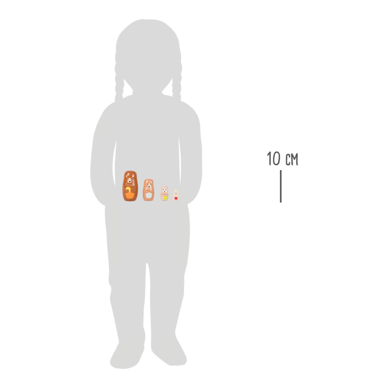 Čtyři láskyplně malované figurky Matrjošky v podobě medvědí rodiny. Menší medvídci se podle velikosti postupně schovávají do sebe. Tyto panenky se snadno uprostřed otevírají, což je skvělá praxe pro koordinaci ruka-oko a jemné motorické dovednosti. Figurky Matrjošky vyzařují své jedinečné kouzlo...