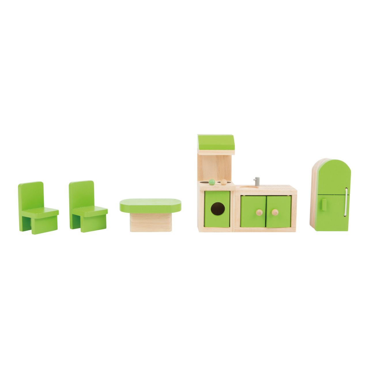 Tato 5 dílná sada vybavení do kuchyňky má velikost pro ohýbací panenky do 12 cm. Je vyrobena z masivního dřeva pro dlouhou životnost. Hlavní vlastnosti: při hře tato sada probouzí fantazii a procvičuje jemnou motoriku