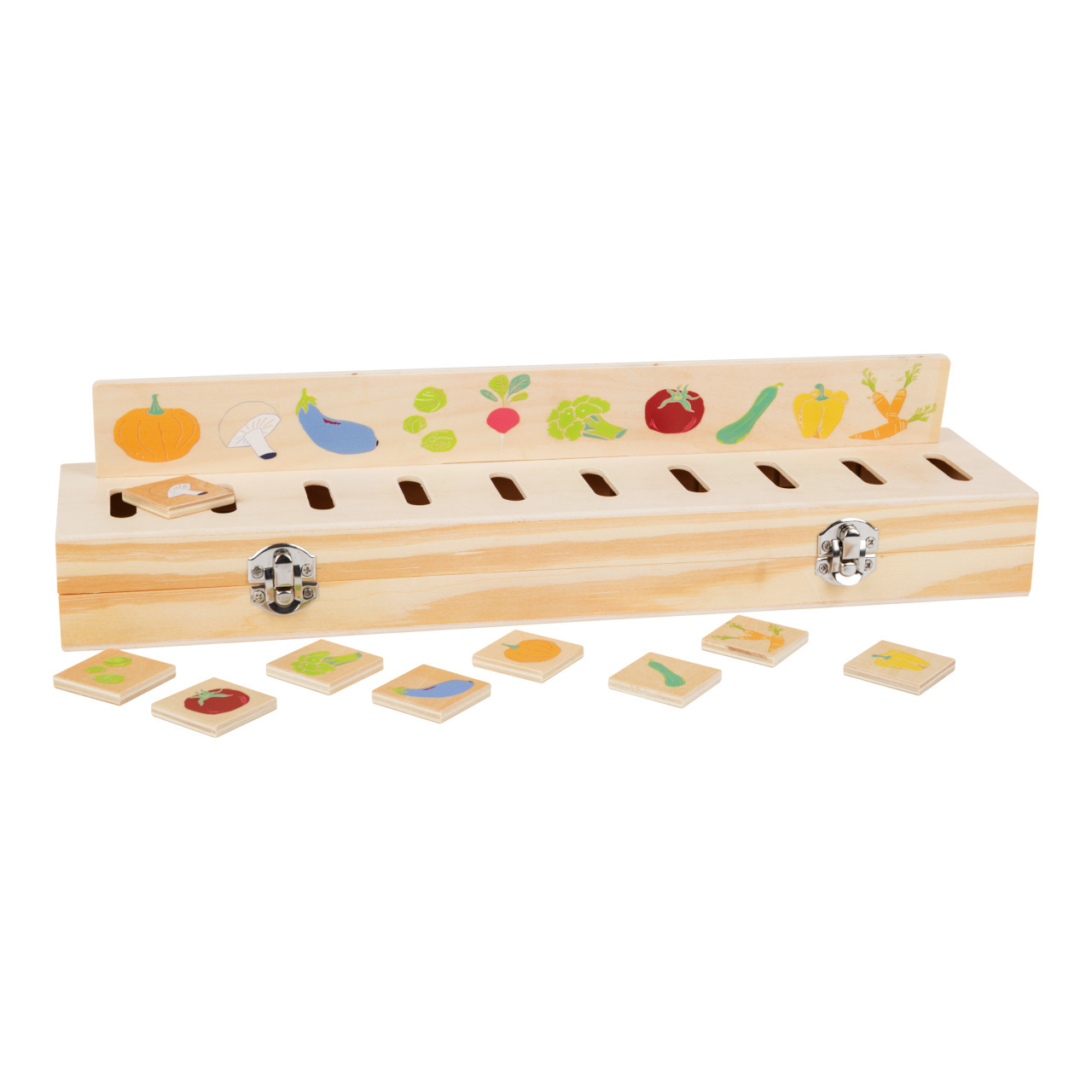 Třiďte rostliny, ovoce a zvířata podle druhu, nechte dítko rozpoznávat barvy a tvary. V herním boxu lze všechny součásti, desky s předlohami i čtvercové žetony, prakticky uschovat a sbalit na cesty. Vyrobeno ze 100% certifikovaného dřeva FSC®. Hlavní vlastnosti: 3 desky