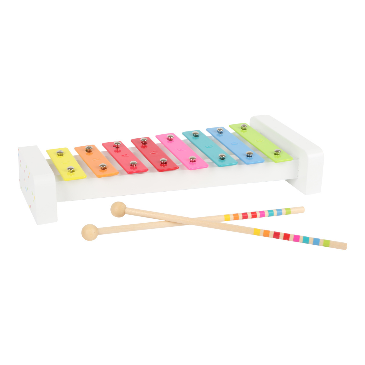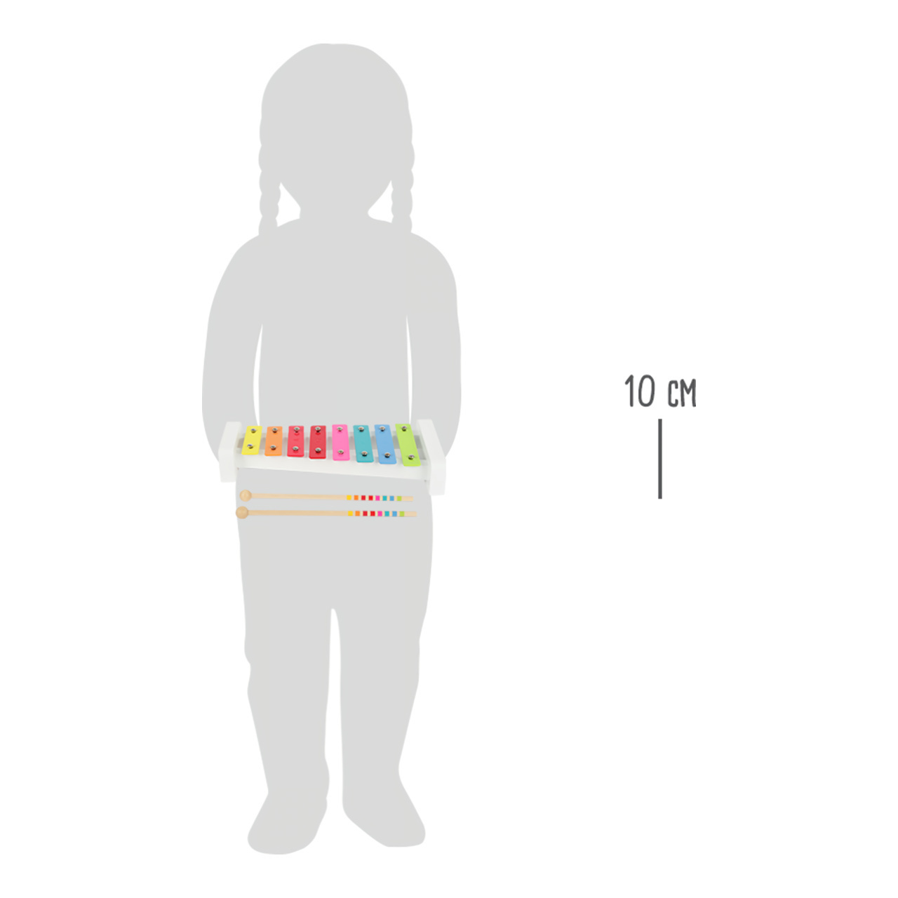 S tímto pestrobarevným xylofonem ze 100% FSC® certifikovaného dřeva získají děti své první zkušenosti ve světě hudby. Klávesy jsou kovové. Ve chvíli, kdy mladí hudebníci udeří jednotlivými paličkami, si potrénují své sluchové vnímání a budou nadšeni z hraní nových