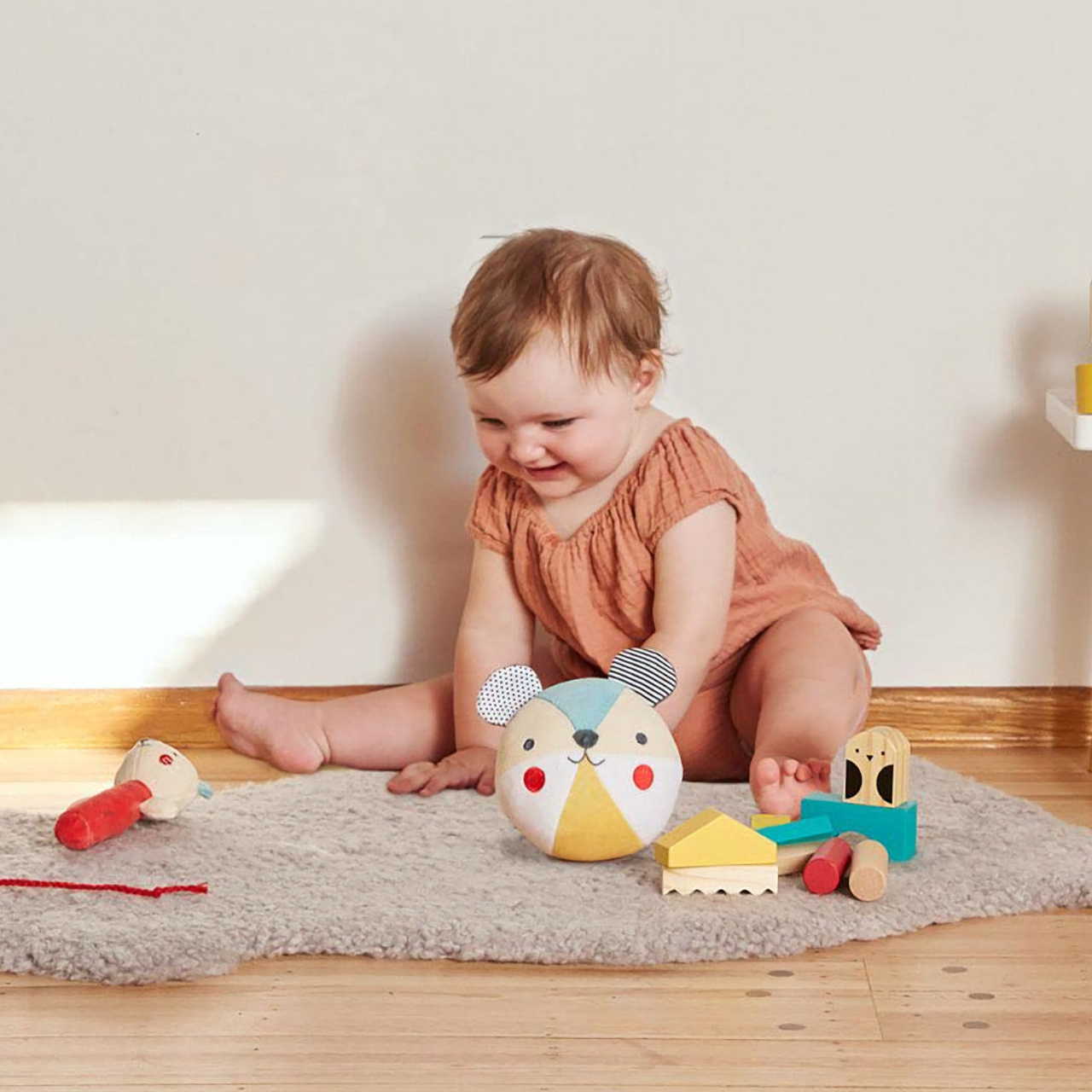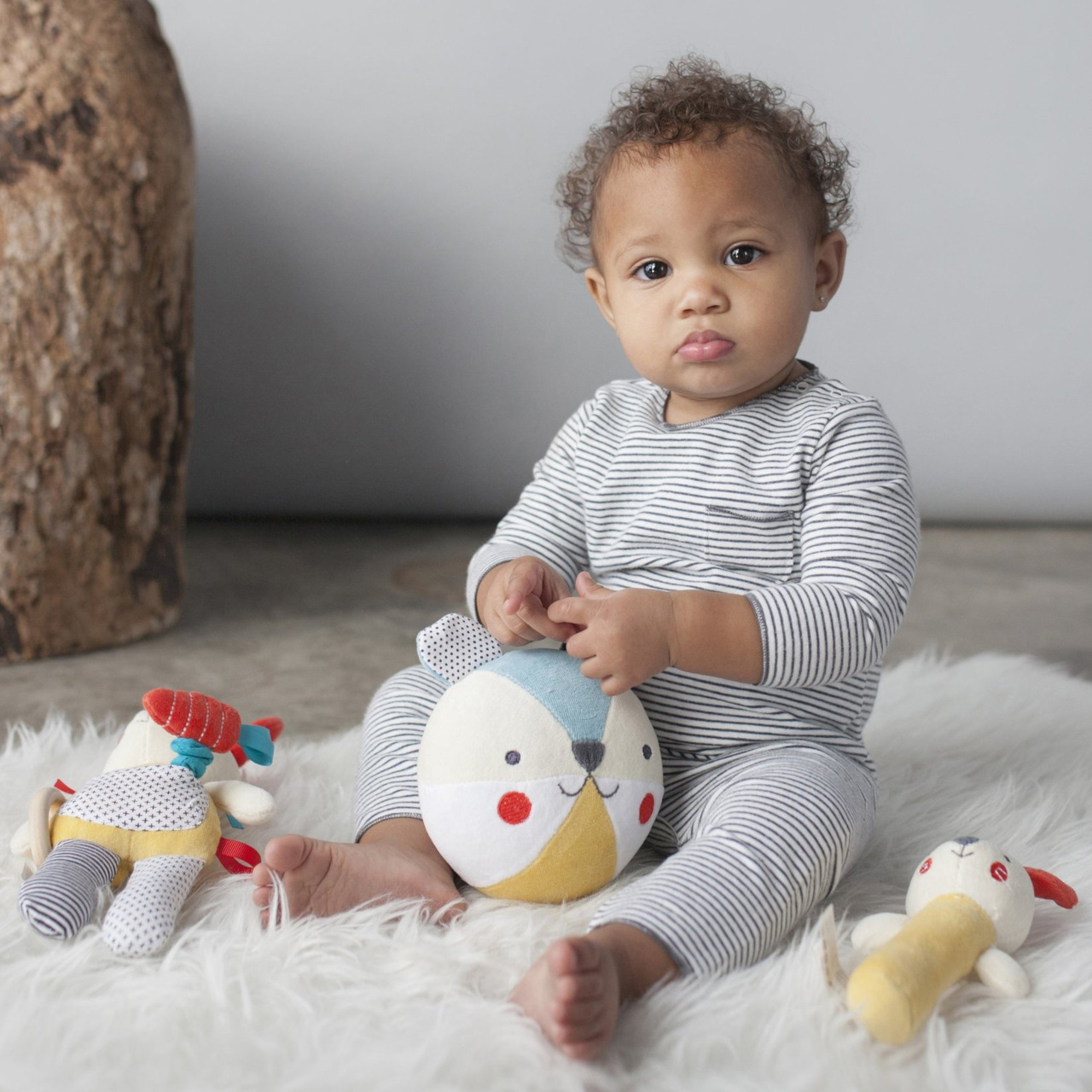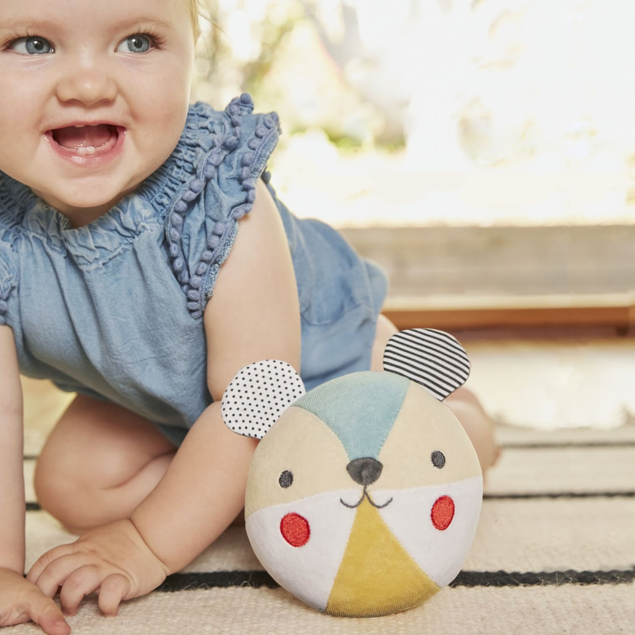 Textilní chrastítko pro děti od narození. Hlavní vlastnosti: Použity barvy na rostlinné bázi šetrné k životnímu prostředíVyrobeno z organické bavlny nejvyšší kvality, certifikováno GOTS