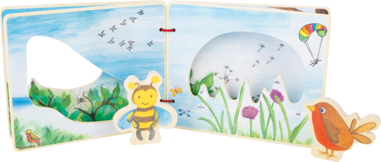 S obrázkovou knihou se vznesete do vzdušných výšin. Malé průzkumníky budou na výpravě knihou doprovázet včelka a ptáček, pomohou hravě objevovat flóru i faunu. Kniha podněcuje fantazii a umožňuje prožít dobrodružství. Dvojici zvířecích průvodců lze pro bezpečnou