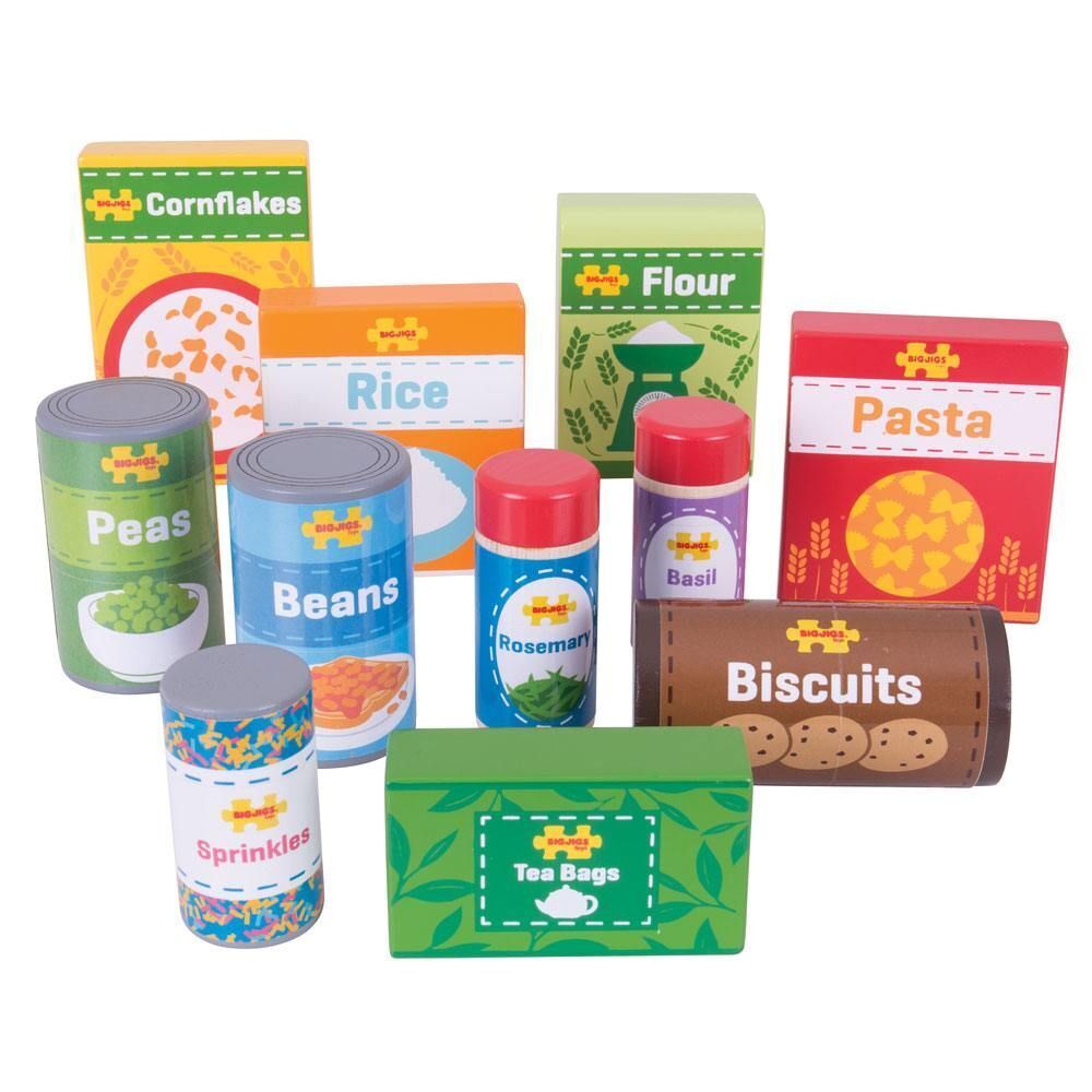 Oživte kuchyňku nebo obchůdek s touto dřevěnou sadou potravin. Sada obsahuje 11 ks základních trvanlivých potravin včetně těstovin, rýže, kukuřičných lupínků, sušenek, čaje, konzervy fazolí a dalších. Zlepšuje koordinaci dětí a inspiruje k hraní v různých rolích. BigJigs je velký fanoušek zdravé...