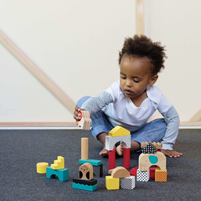 Skládejte, stavte, zbořte, opakujte. Robustní kostky mají jemně zaoblené okraje a jsou jednoduše uchopitelné. Perfektní pro batolata. S 26 dílky v různých tvarech a barvách mohou děti postavit cokoliv, kreativitě se meze nekladou. Obsahuje 14 tvarů a několik vzorů, od teček po proužky a 3...