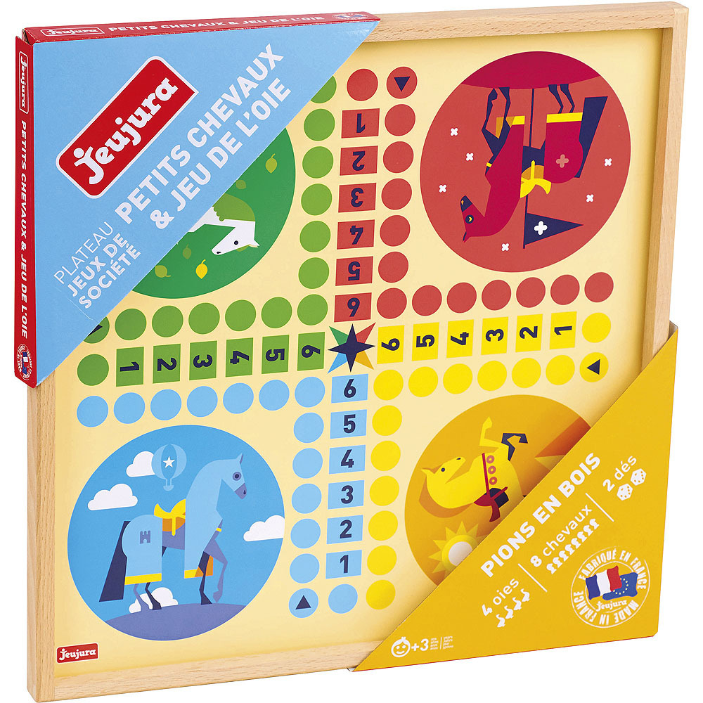 Deska s dvojicí her. Obsahuje husu a variantu člověče nezlob se s figurkami koní. Souprava je vyráběna ve Francii, z masivního bukového a borovicového dřeva francouzského původu. Součásti jsou ošetřeny výhradně za použití barev a laků na bázi vody. Hlavní