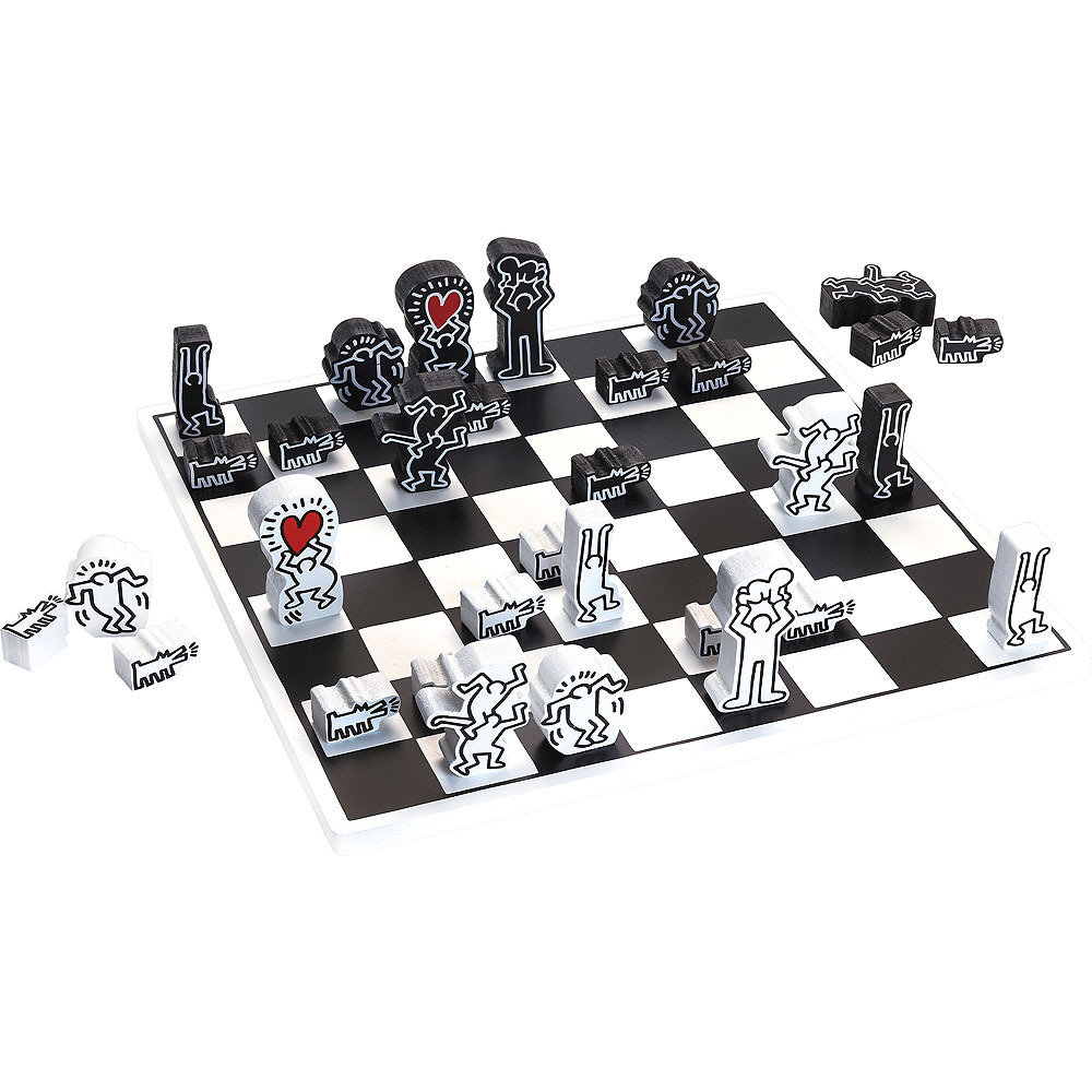 Extravagantně ilustrované dřevěné šachy, které si jistě najdou místo na poličce, jako dekorace. Produkt, který prostě musí mít každý fanoušek dizajnu a Keitha Haringa. Hlavní vlastnosti: tradiční hra v moderním kabátědesign Keith Haring Keith Haring (1958–1990) byl