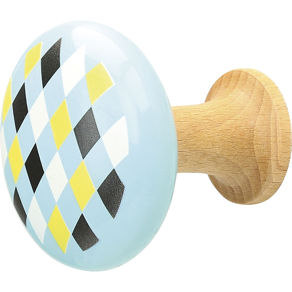 Set dřevěných věšáčků, jeden s ilustrací sovy, druhý s barevnými kosodélníky. Navrženo Ingelou P. Arrhenius. Vyrobeno z lakovaného dřeva ve Francii. Hlavní vlastnosti vyrobeno ve Franciidesign Ingela P. Arrhenius Švédská umělkyně Ingela Peterson Arrhenius se narodila