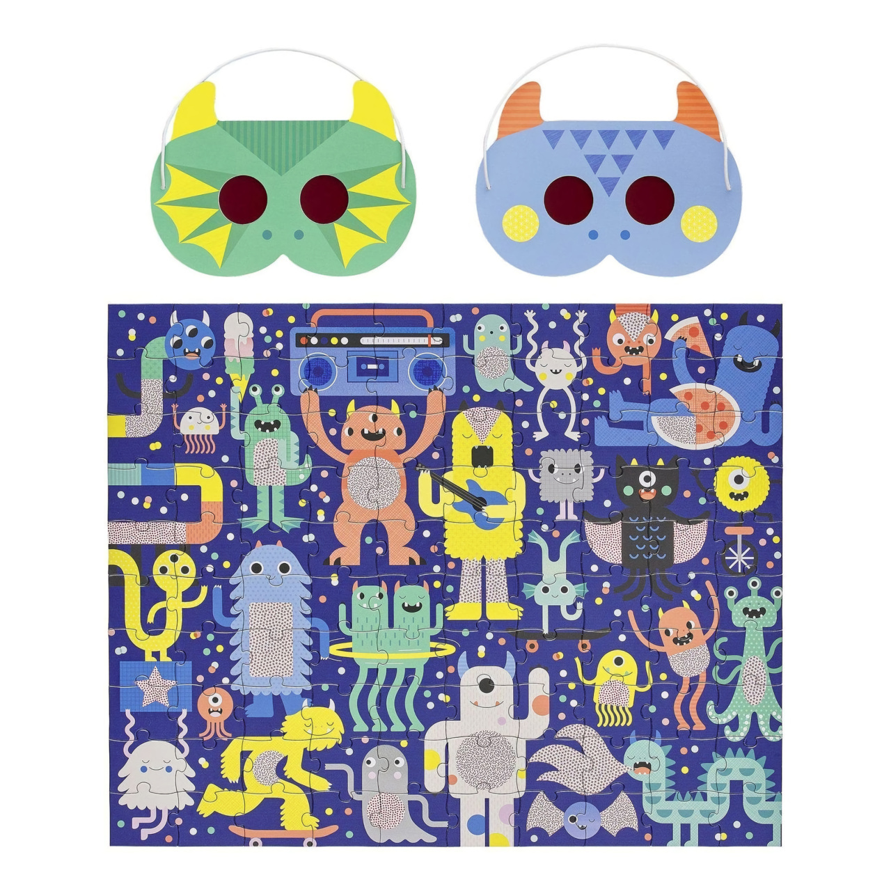 Složte puzzle, a poté pomocí dvou zvířecích 3D brýlí najděte objekty, které se skrývají v rušné scéně. Tyto roztomilé příšerky jsou připraveny slavit na festivalu, ale ztratily pár věcí. Poskládejte puzzle, nasaďte si 3D brýle a pomozte jim najít skryté objekty -
