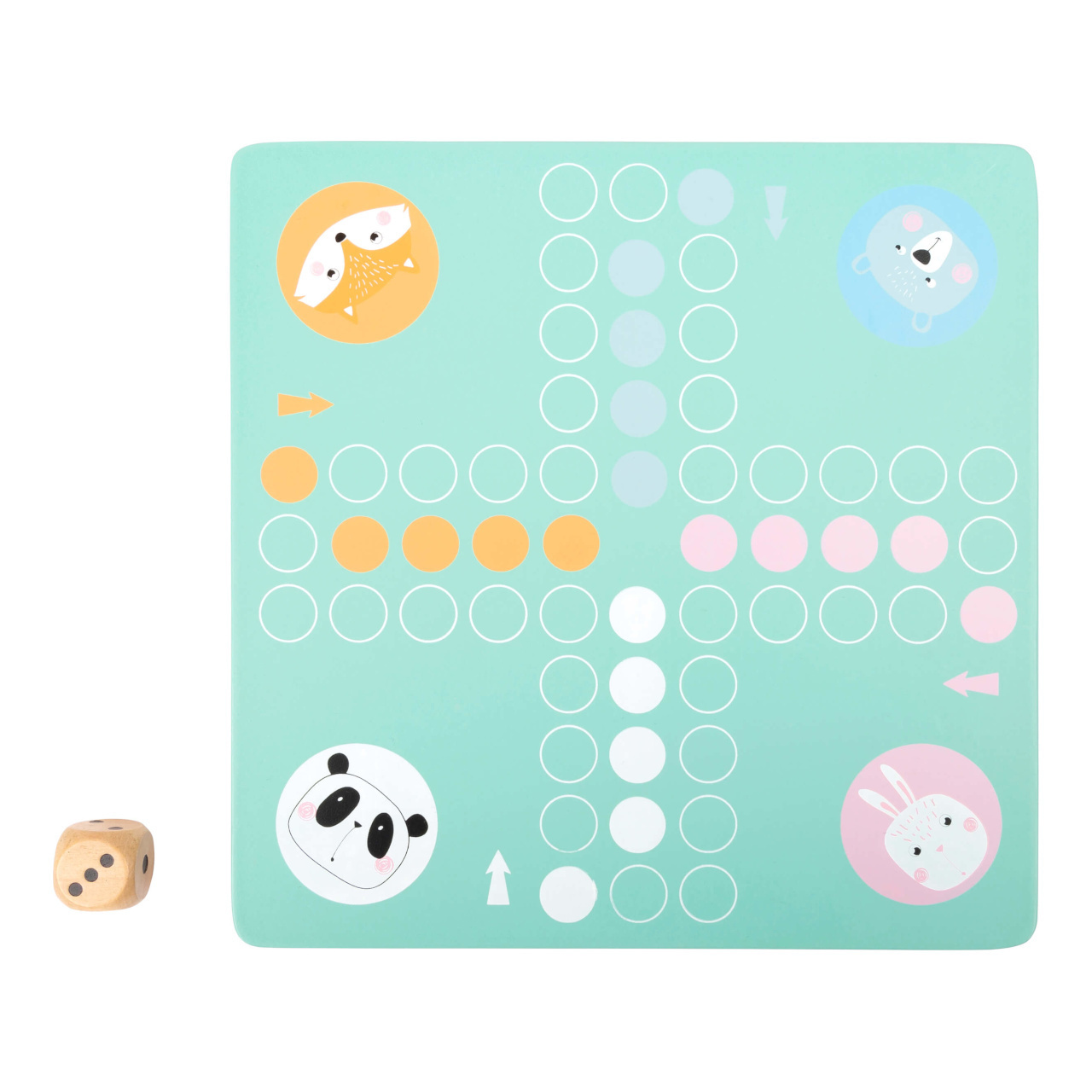 Které zvířátko se jako první dostane do svého domečku? Vyzkoušejte šikovnou hru v pastelových barvách s dřevěnými figurkami ve tvaru zajíce, pandy, medvěda a lišky. Hod kostkou udává, kolik kroků může daná figurka udělat. Vzrušující kompaktní společenská hra v moderních barvách. Hlavní...