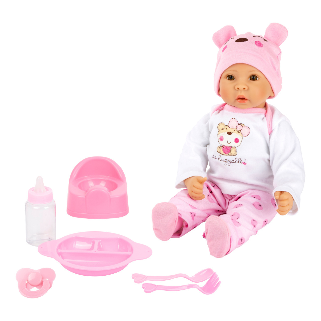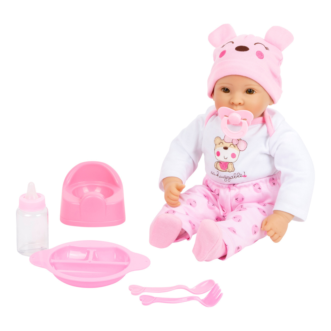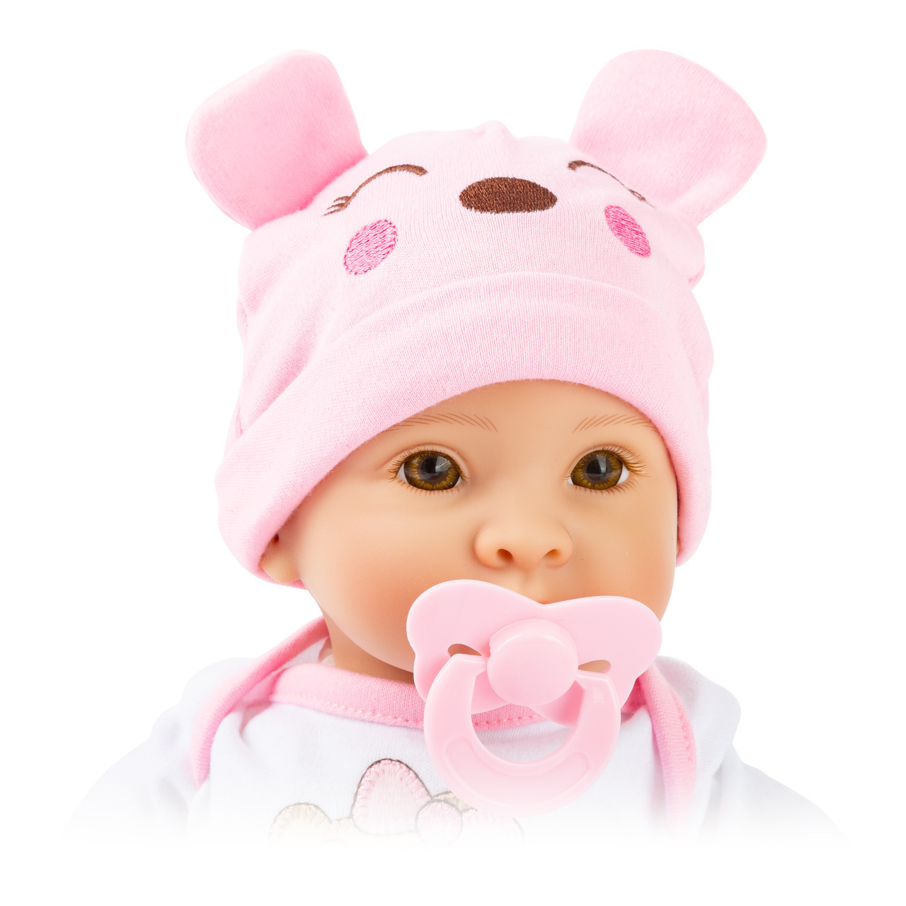 Panenka Marie s měkkým látkovým tělem, plastovou hlavičkou a končetinami se spoustou doplňků. Oblečení pro panenku se snadno obléká i svléká. Součástí balení je i barevně sladěný dudlík, sada nádobí, kojenecká láhev a nočník. Obzvláště realistický výraz obličeje s krásnýma nemrkacíma očima. S...