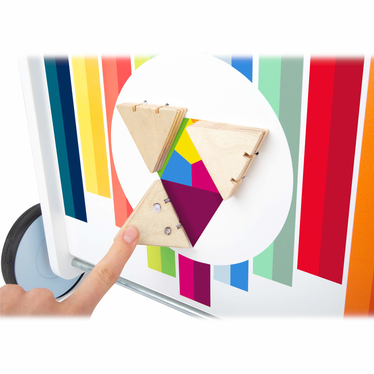 bludiště, otáčivé kostky, odklápěcí trojúhelník a tabulka pro kreslení křídoupraktický úložný prostortichý chododolné dřevěné provedení