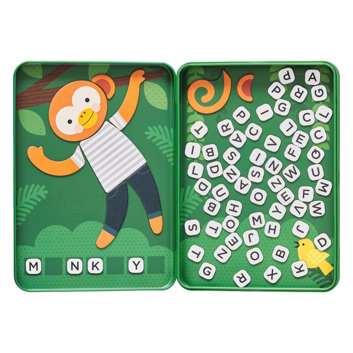 Uhodněte tajné slovo svého spoluhráče dříve, než dokončí obrázek opičky! S touto cestovní magnetickou hrou si děti rozvinou slovní zásobu – je to v podstatě vylepšená hra šibenice... Hlavní vlastnosti: Skvělá cestovní hračka v kovové krabičce Natištěno netoxickými barvami, které berou v potaz...