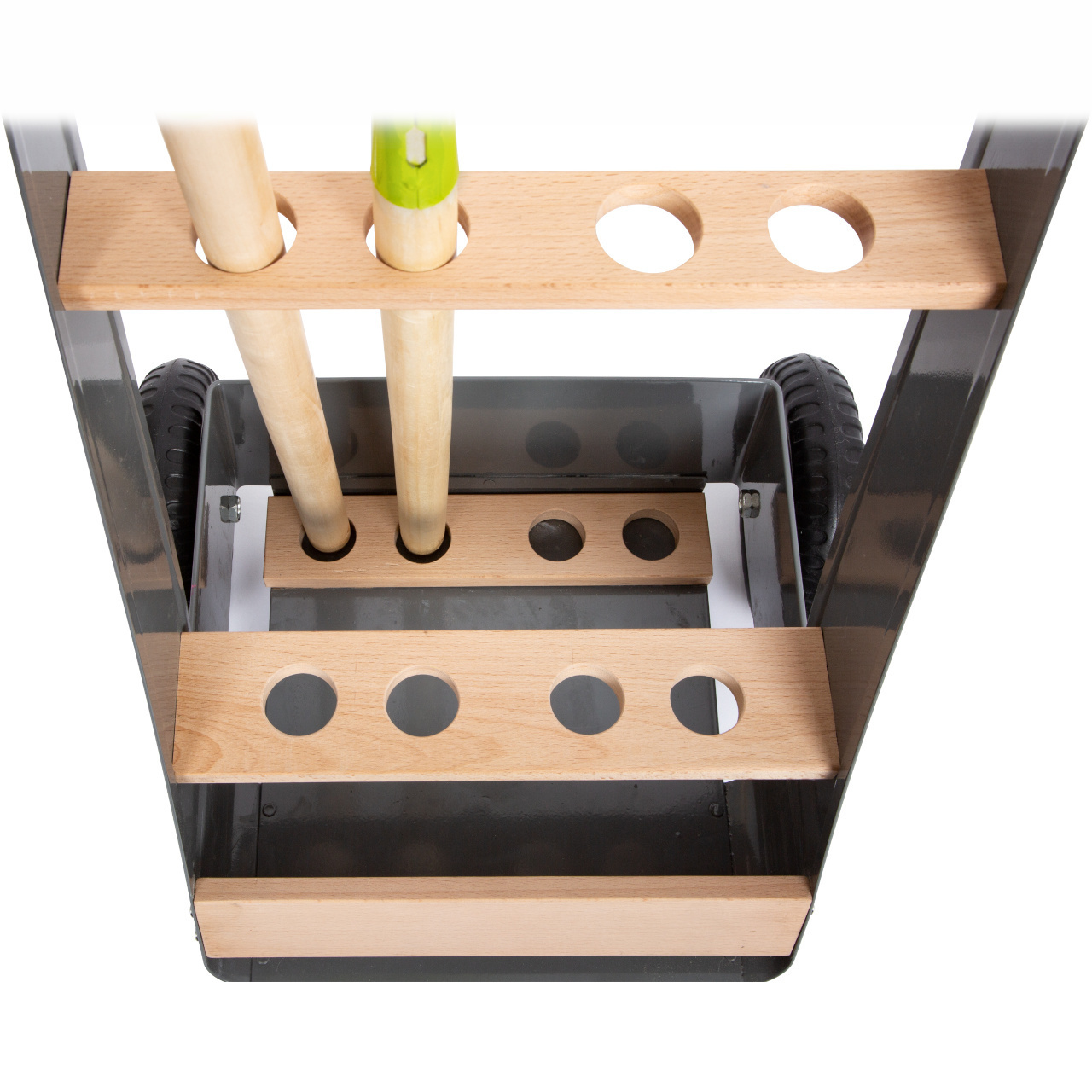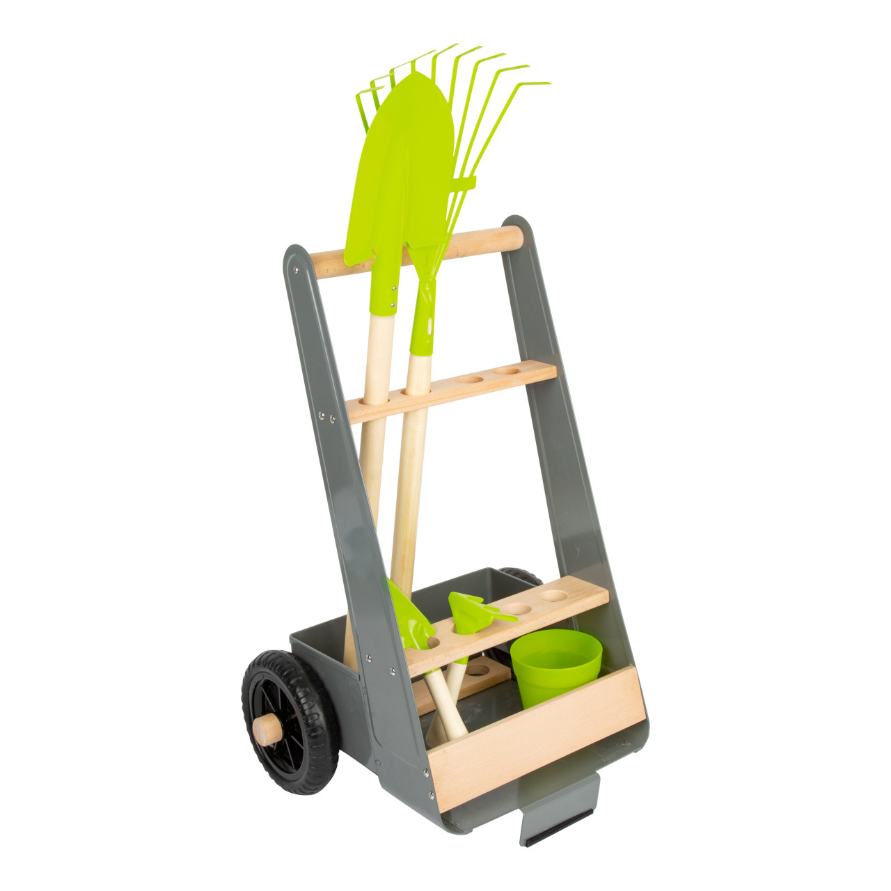 Mladí nadšení zahradníci a zahradnice teď mohou začít pracovat na svém vysněném záhonku. Stabilní vozík vyrobený z bukového dřeva a kovu lze jednoduše tlačit či tahat po zahradě, má k tomu totiž stavěná kola. Dobře promyšlený design myslel na úložný prostor, vzhled i bezpečnost. Hrábě, rýč i...