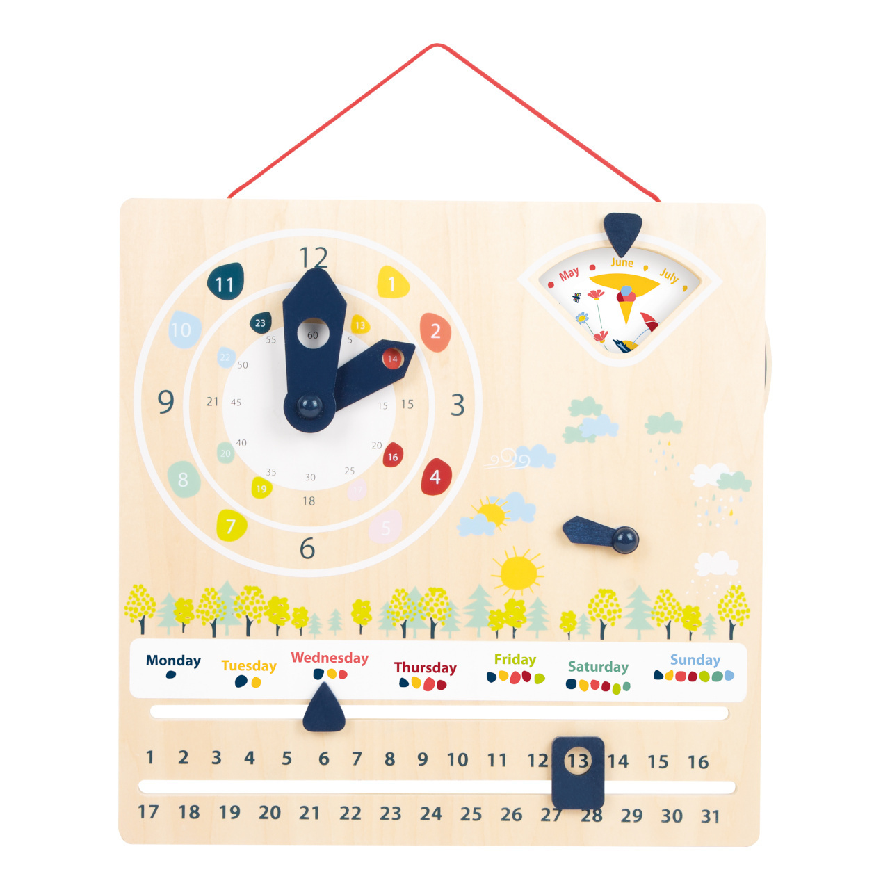 dovednosti. Se závěsným zařízením a nálepkami, pro použití v 15 evropských jazycích: CZ, DE, DK, EN, ES, FI, FR, GR, IT, NL, NO, PL, PT, RU, SE. Hlavní vlastnosti: procvičuje motorické schopnostipoužití v 15 evropských jazycíchučí poznávat čas a datumvyrobeno z 100% FSC