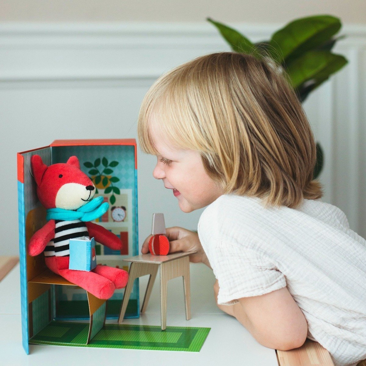 Uvnitř této knihovny potkáte lišáka Francese, který velice rád čte knihy na své oblíbené a pohodlné žluté židli. Rád by Vám přečetl pohádku! Má měkkou plyšovou srst a milý úsměv. Jeho kniha má velikost tak akorát pro něj a je v ní opravdový text, takže tuto knihu můžete přečíst, pokud umíte...