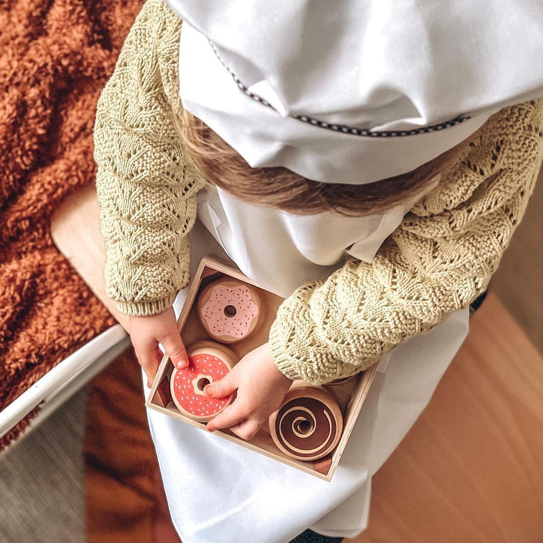 Dřevěný box s donuty, které vypadají realisticky a velmi chutně. Můžete je sníst sami nebo se podělit s ostatními! Ideální hračka, která děti seznámí s možností volby a se sdílením. Perfektní hračka pro čajové dýchánky nebo pikniky. Podporuje děti v kreativitě a hraní na role. Vyrobeno z...