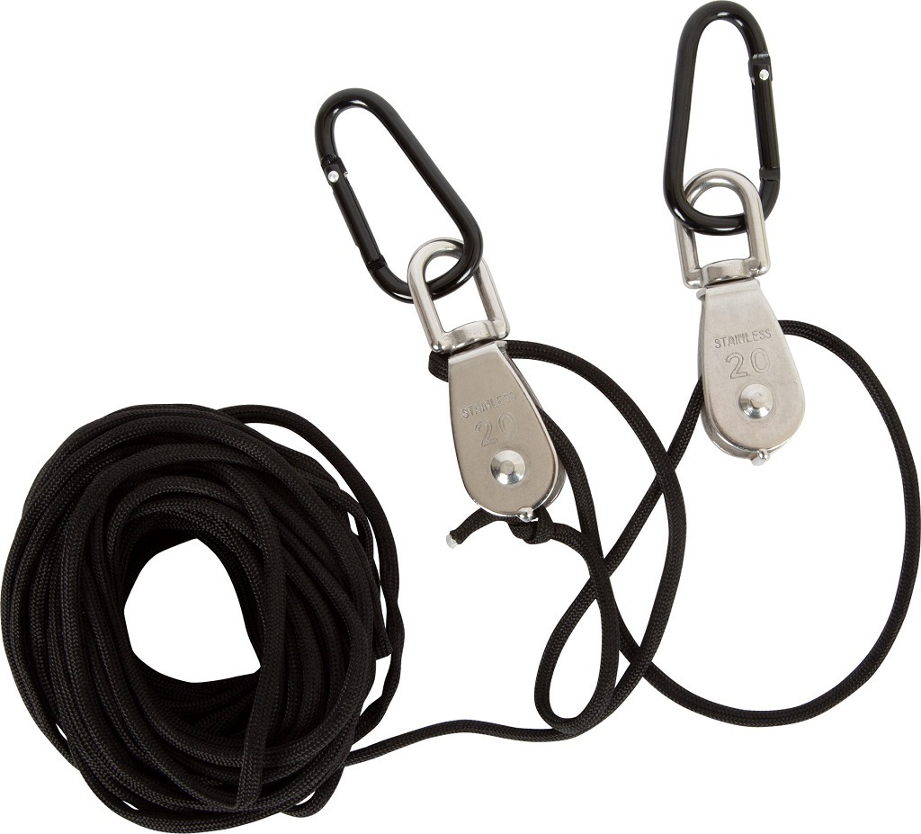 Do zahradního domečku, domu na stromě, na prolézačky nebo kamkoliv jinam! S tímto kladkostrojem se silným lanem a kovovým kyblíkem si mohou mladí dobrodruhové dopravit jakýkoliv náklad na tato zmíněná vyvýšená místa a zase zpět dolů. Děti tak nemusí opakovaně lézt nahoru a dolů. Je to zábavná...