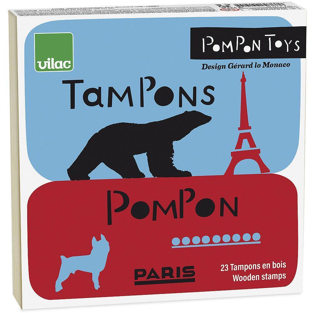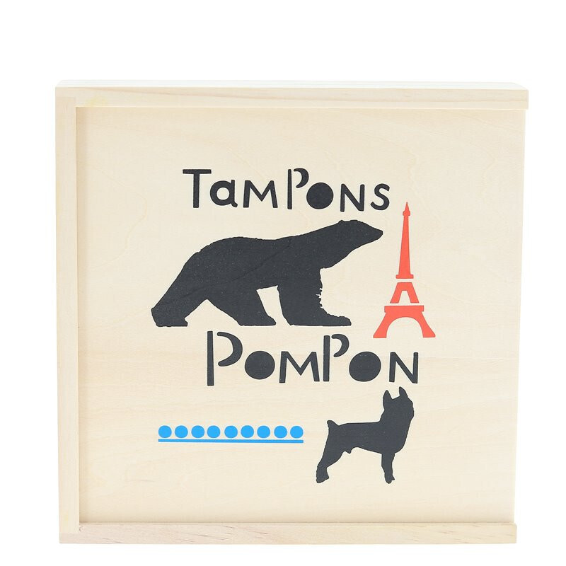 19x19x4 cm Věk: 3+ Materiál: dřevo, guma Obsahuje 23 dřevěných razítek a 3 inkoustové polštářky Design Francois Pompon