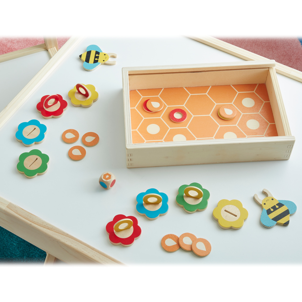 Pomozte včelkám sbírat z květů nektar a vyrábět med. Házejte kostkou, hledejte shodu barev a poznejte význam včel v přírodě. Hra je vyrobena z odolné překližky, součásti jsou vyvedeny v pestrých barvách a uloženy jsou v praktické krabičce. Hlavní vlastnosti: pro 2 hráčepraktické balení ...
