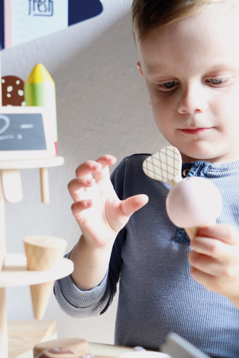 Naběračka zmrzliny s magnetickou funkcí. 8 různých druhů zmrzliny, od nanuků po lahodnou zmrzlinu. Kopečky zmrzliny jsou stohovatelné a vybavené magnety. Vaflová srdíčka a porce šlehačky na ozdobu zmrzlinových výtvorů. Všechny části zmrzlin se vejdou do barevně rozlišených míst na stojanu....