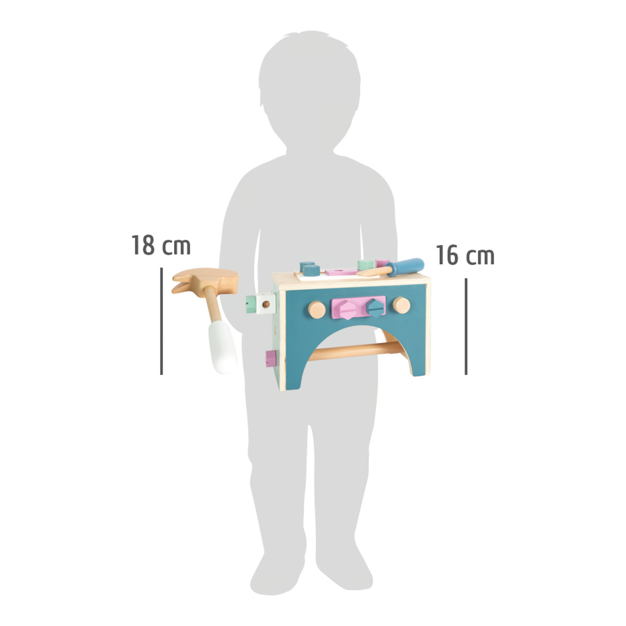 Praktická sada nářadí v bedýnce s rukojetí. Hračka 2v1, když bedýnku otočíte, můžete ji použít jako pracovní desku! Díky této vychytávce dětem hračka nabídne nekonečné možnosti hraní, mohou si hrát i na cestách. Neokázalé skandinávské barevné schéma s jasně viditelným dřevem. V balení najdete 5...
