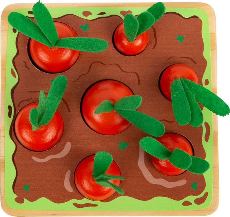 Vzdělávací hra isnpirovaná pedagogickou metodou Montessori. Hra vkládání a třídění tvarů se sedmi mrkvemi různých velikostí. Učení zábavnou formou, děti mohou při třídění a vkládání porovnávat velikosti. Trénuje jemnou motoriku, postřeh, porozumění velikostem. Zelené plstěné části dělají design...