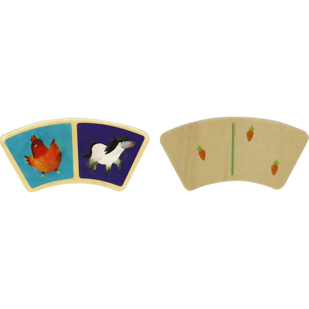 Sada dřevěných dílků domina s motivem farmy. Domino je originální díky obloukovitému tvaru jednotlivých dílků a dostatečné velikosti i pro nejmenší děti. Obsahuje 28 dřevěných domin. Hlavní vlastnosti: obloukový tvar domino dílkůobsahuje 28 dílkůvhodné od 2 let