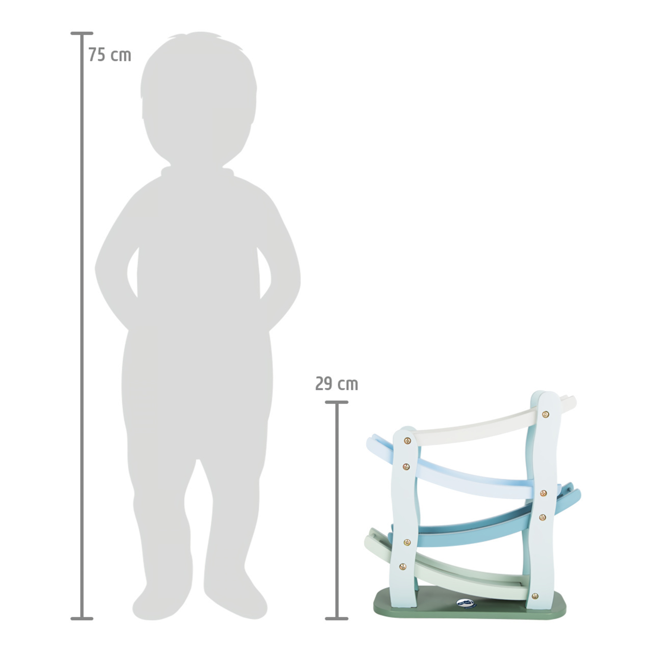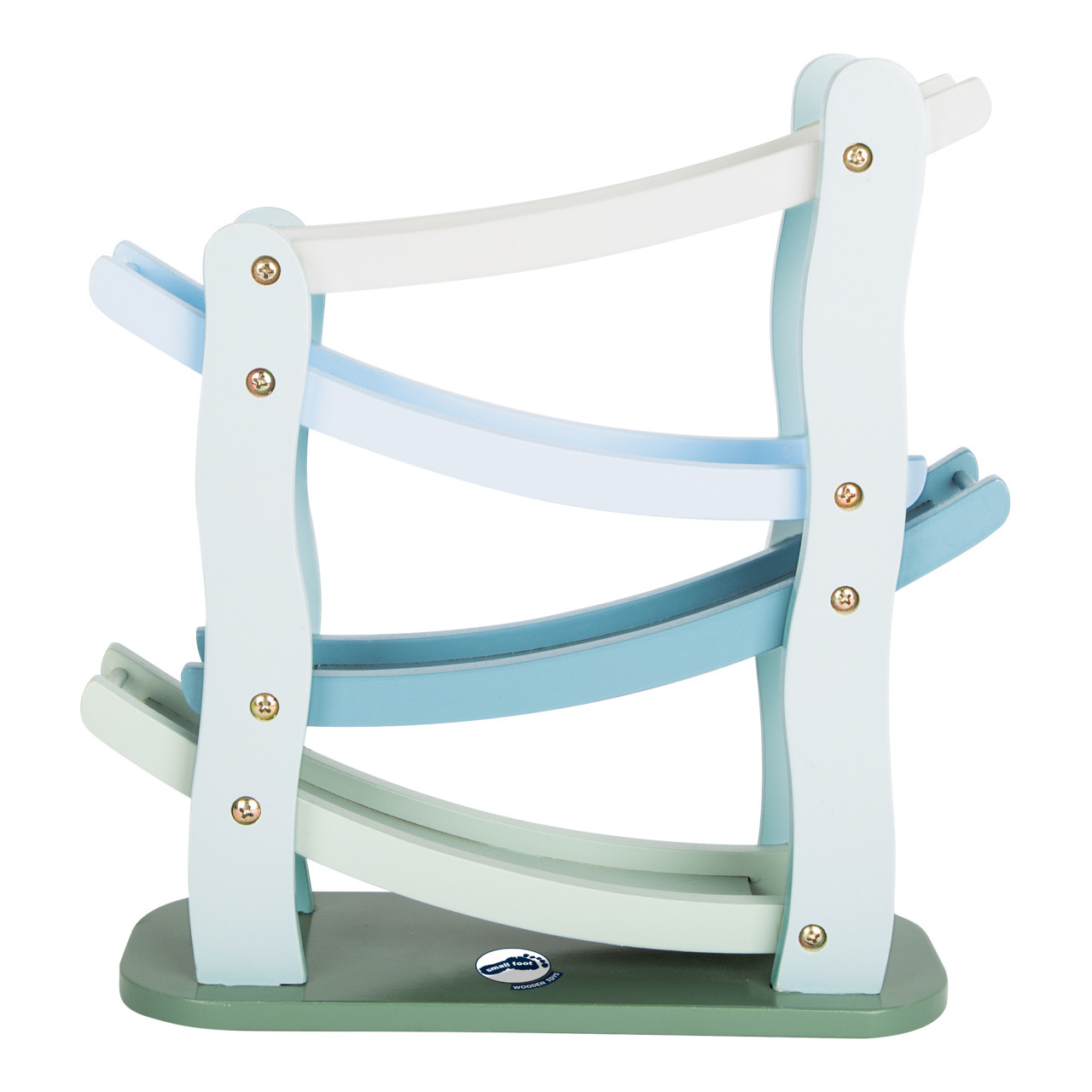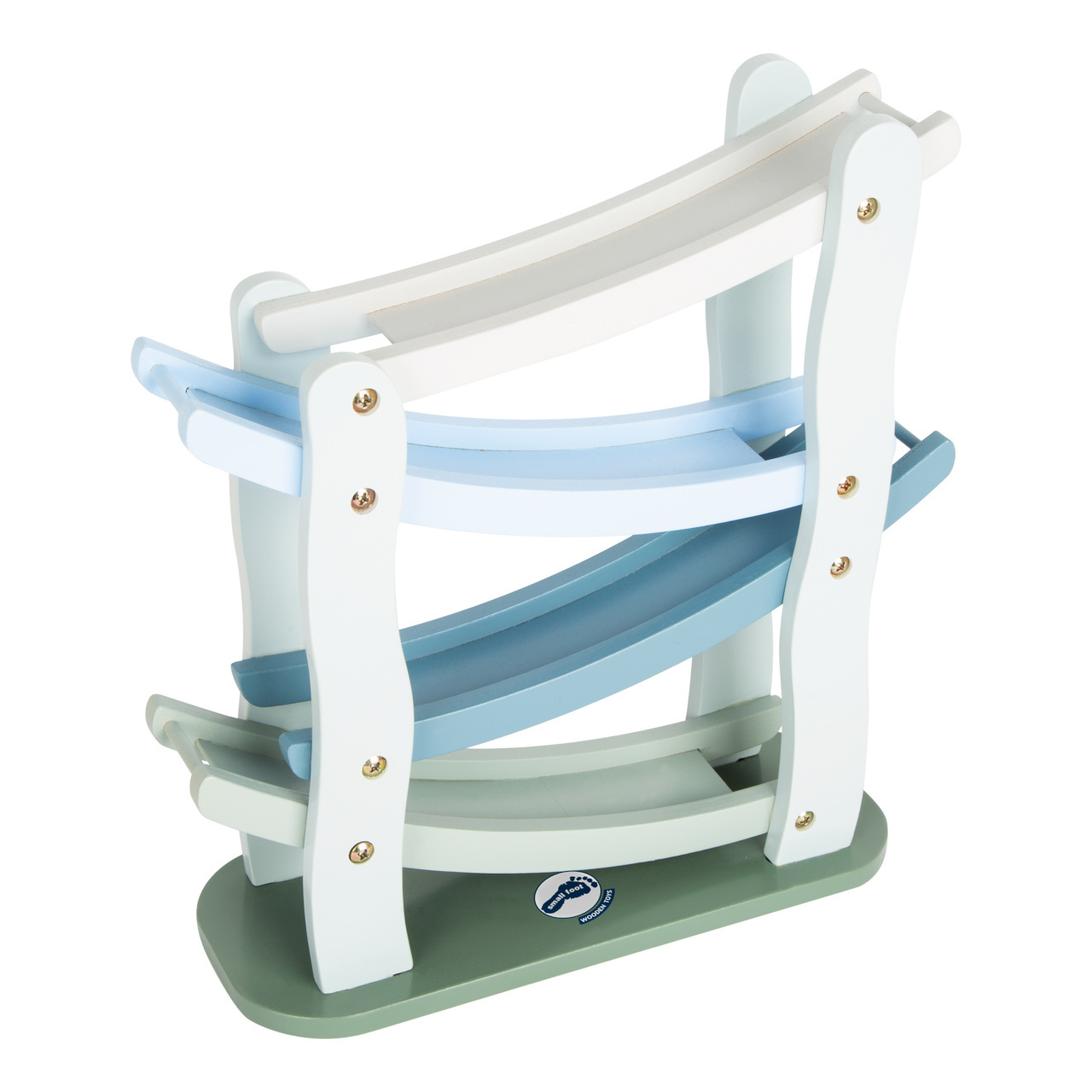 Na značky, připravit, start! Tato dřevěná kaskádová závodní dráha nabízí prostor pro změření rychlosti 4 autíček. Z jednoho patra na druhé, autíčka dělají přemety a jen koukat na ně je zábavné. Dráha je vyrobena z přírodního a bílého dřeva, jedno autíčko je přírodní, zbylé 3 jsou barevné. Hračka...