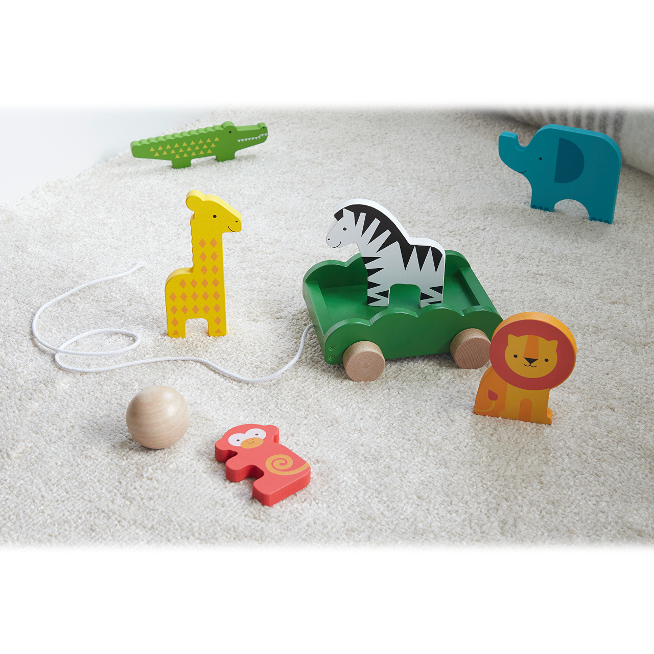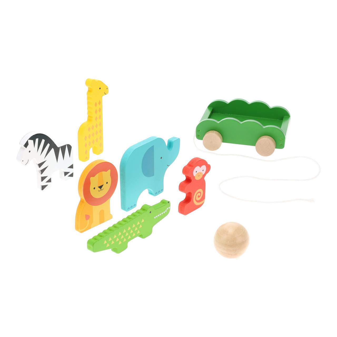 Pestrobarevné figurky usměvavých zvířátek ve vozíku čekají, až je děti rozestaví a pokusí se je povalit přibalenou koulí. Díky rozličným tvarům je srážení figurek různě obtížné. Zvířátka lze snadno využít i při mnoha jiných fantastických hrách. Hračka pomáhá rozvíjet hrubou motoriku, koordinaci...