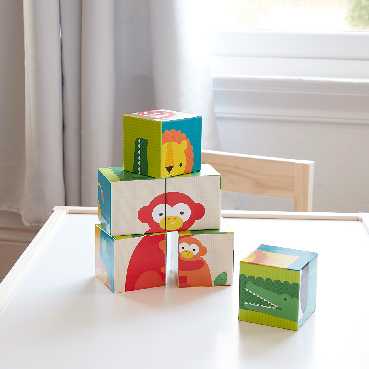 Skládání obrázků s roztomilými zvířátky si děti zamilují. Kostky nabízí 6 různých obrázků v atraktivních barvách a s nimi dlouhotrvající zábavu. Skvělá pomůcka pro rozvíjení senzomotorických dovedností. Vyrobeno z udržitelně získaných a recyklovaných