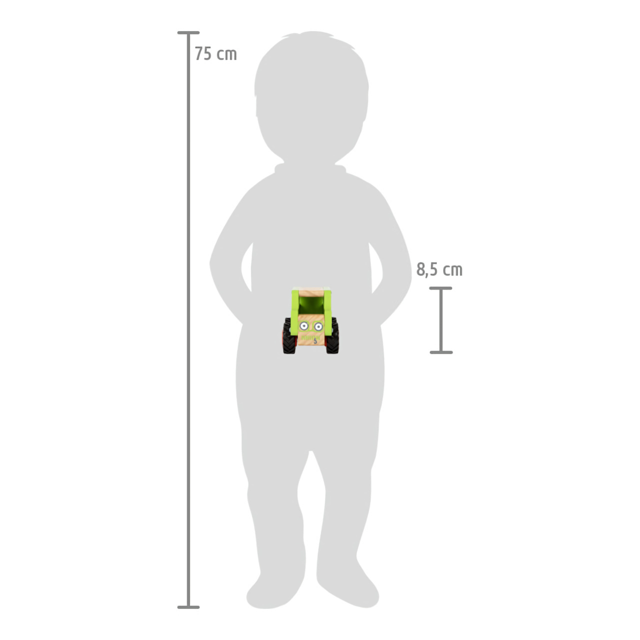 Rozměry: 13x7,5x8,5 cm Věk: 18m+ Materiál: 100% FSC® dřevo, plast, guma, kov
