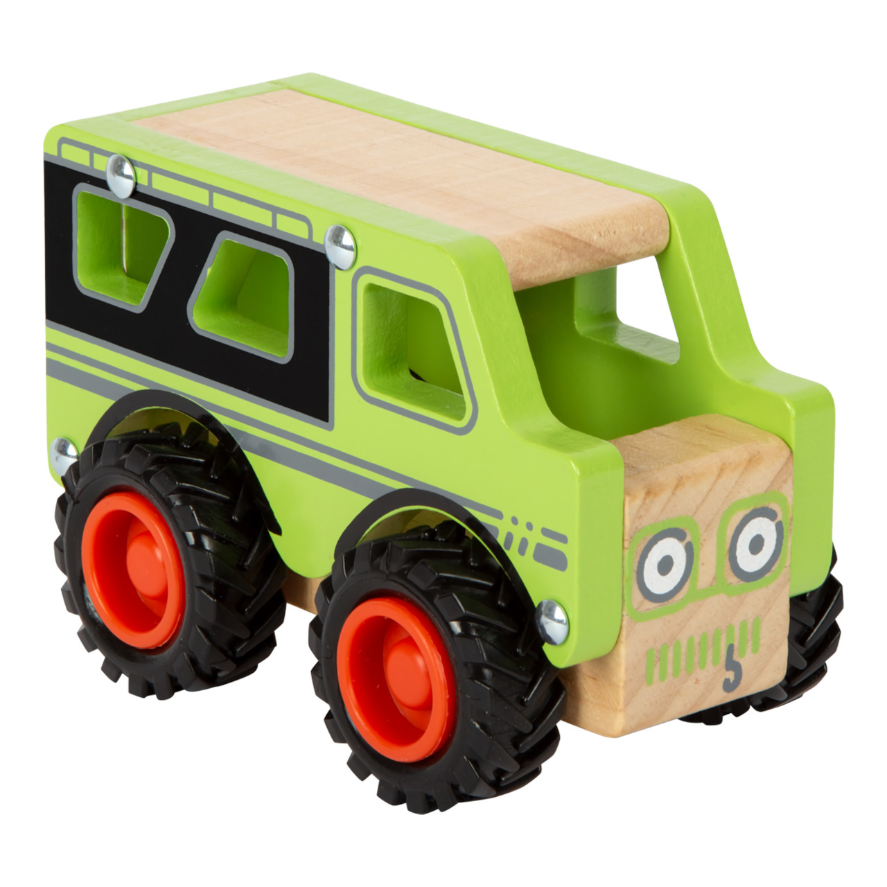 Robustní a odolné autíčko vyrobené z masivního, udržitelně získaného dřeva. Disponuje prostornou, otevřenou kabinou, do které lze usadit figurku řidiče. Gumová kola autíčka zajišťují kultivovaný tichý chod na všech typech povrchů. Hlavní vlastnosti:robustní