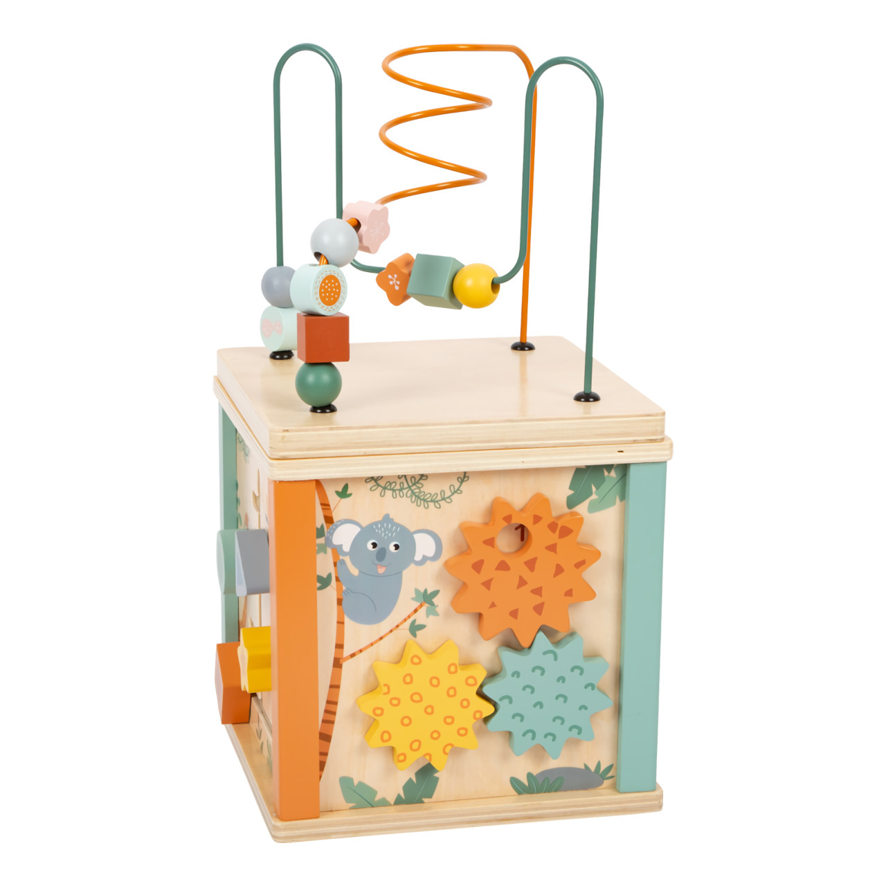 Prozkoumejte džungli motorických aktivit. Kostka je vyvedena v originálních a atraktivních safari barvách a motivech, s mnoha roztomilými zvířátky. Po stranách nabízí posuvné i korálkové bludiště, otočné kameny, ozubená kolečka a vkládačku. Děti s jejich pomocí mohou rozvíjet orientaci...