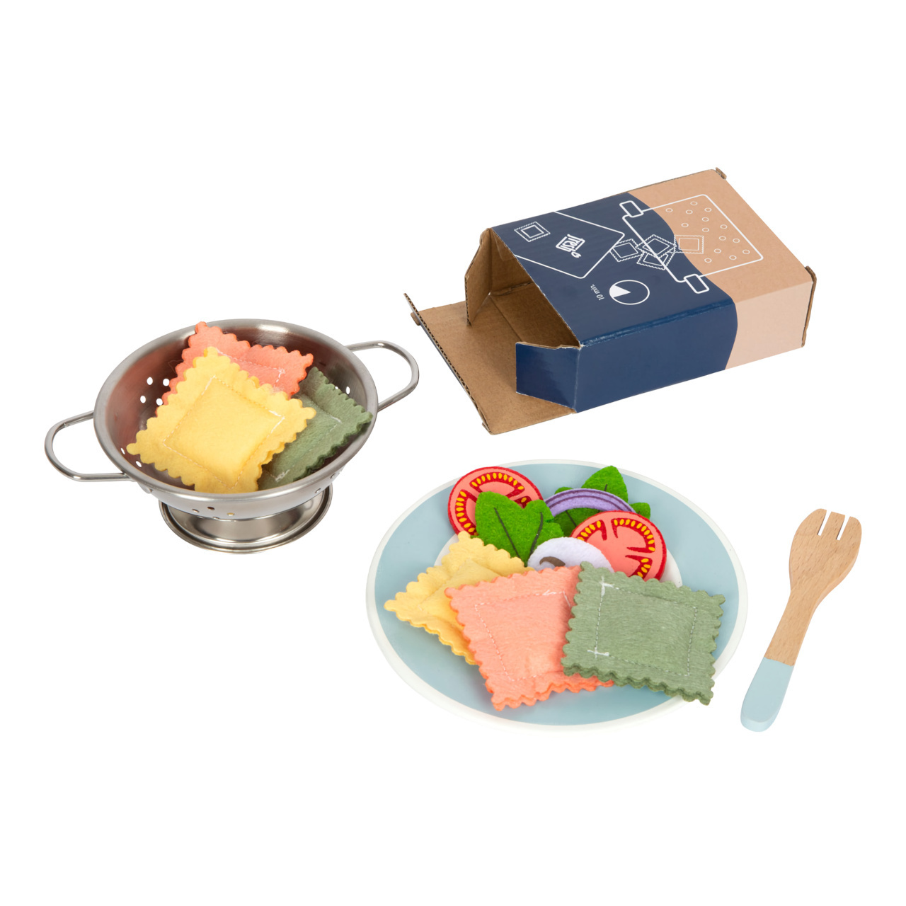 Vždy al dente! Staňte se mistry ve vaření těstovin s bohatou soupravou nádobí a rozmanitého příslušenství. V sadě naleznete atraktivní plstěné makety několika druhů těstovin a dalších přísad. Na krabičkách k ingrediencím je vyobrazen správný postup vaření, děti tak snadno znalostmi přípravy...