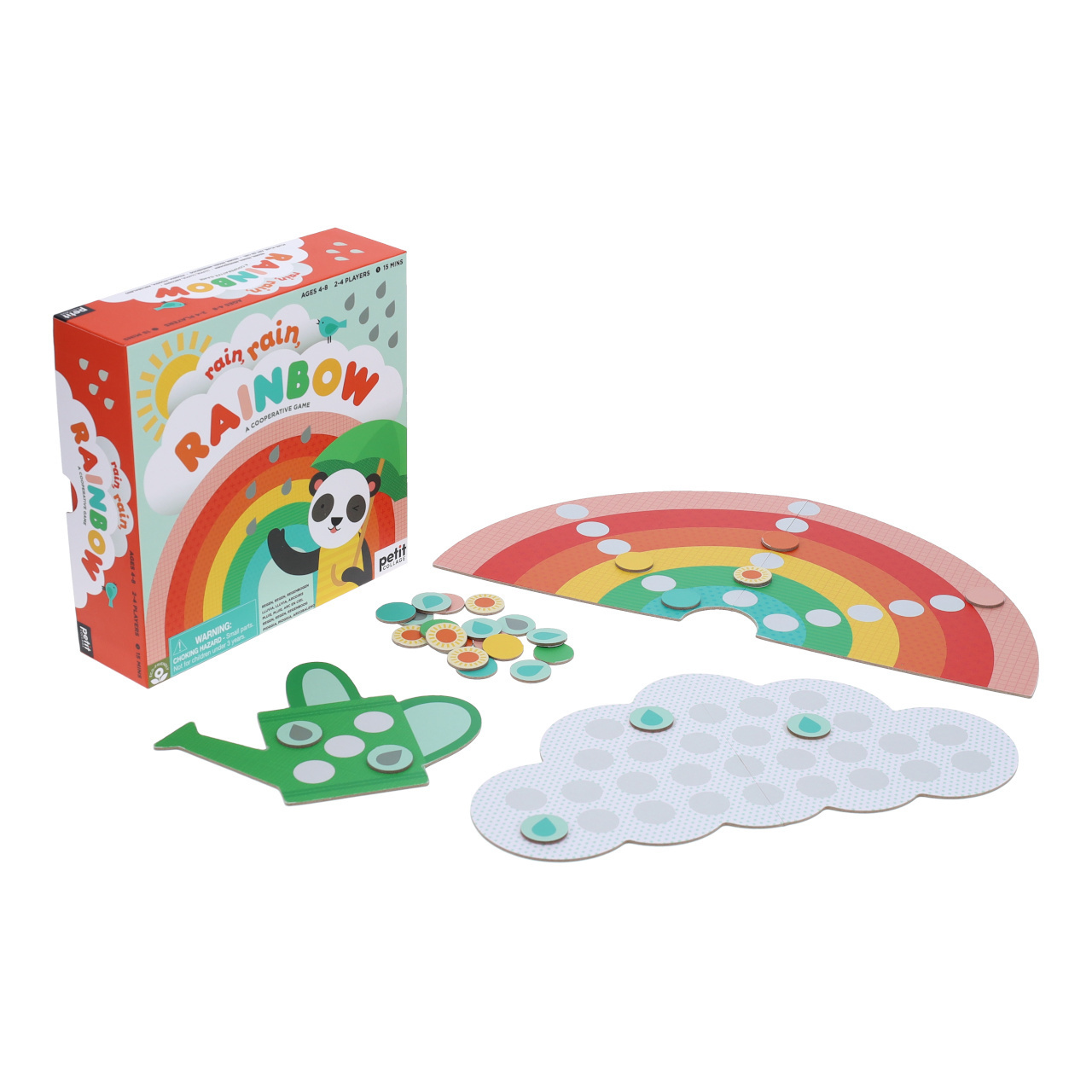 Při kooperativní hře musí děti spolupracovat, jinak se jim nepodaří vyhrát! Cílem hry, s názvem Rain, rain, rainbow, v překladu Déšť, déšť, duha, je setřídit barvy a vyplnit duhu dříve, než se konev naplní dešťovou vodou. Tato kooperativní hra děti nabádá ke
