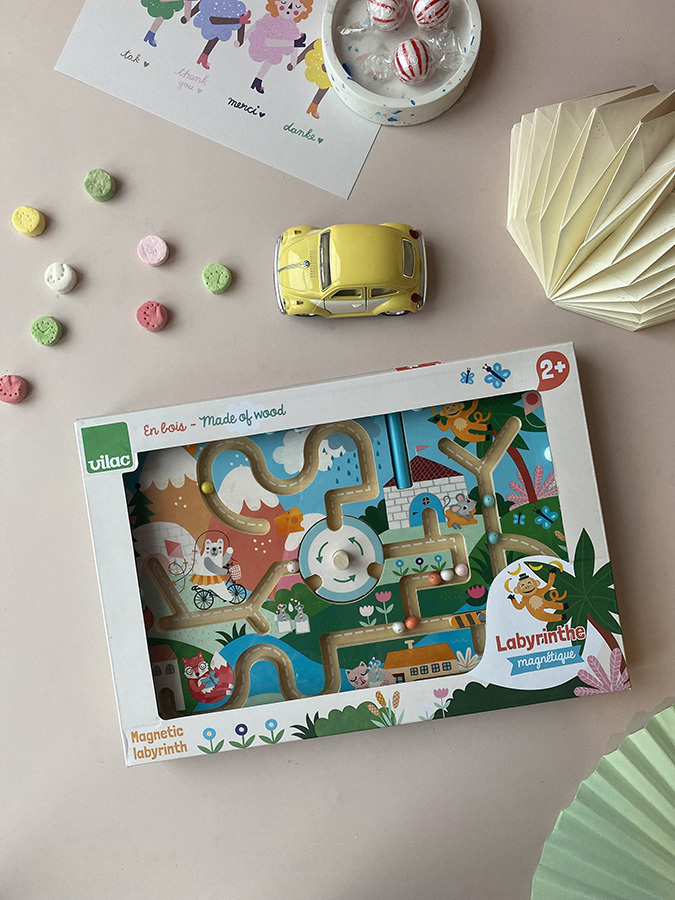 papírnictvích a dětských obchodech. Michelle se inspiruje vším kolem ní. Její výtvory jsou něžné a poetické, stylizovaný a dětinský styl, který se perfektně prolíná s hračkami firmy Vilac. „Jsem hranolky milující, časová optimistka a tvůrkyně ekologických plakátů