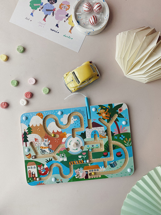 vyobrazená zvířátka i děje a pochopit souvislosti mezi nimi lze také rozvíjet poznávací dovednosti. Hlavní vlastnosti: bludiště a magnetické perozábavné i bezpečné díky magnetickému principudesign Michelle Carlslund Cestujte s námi v naivním a elegantním světě
