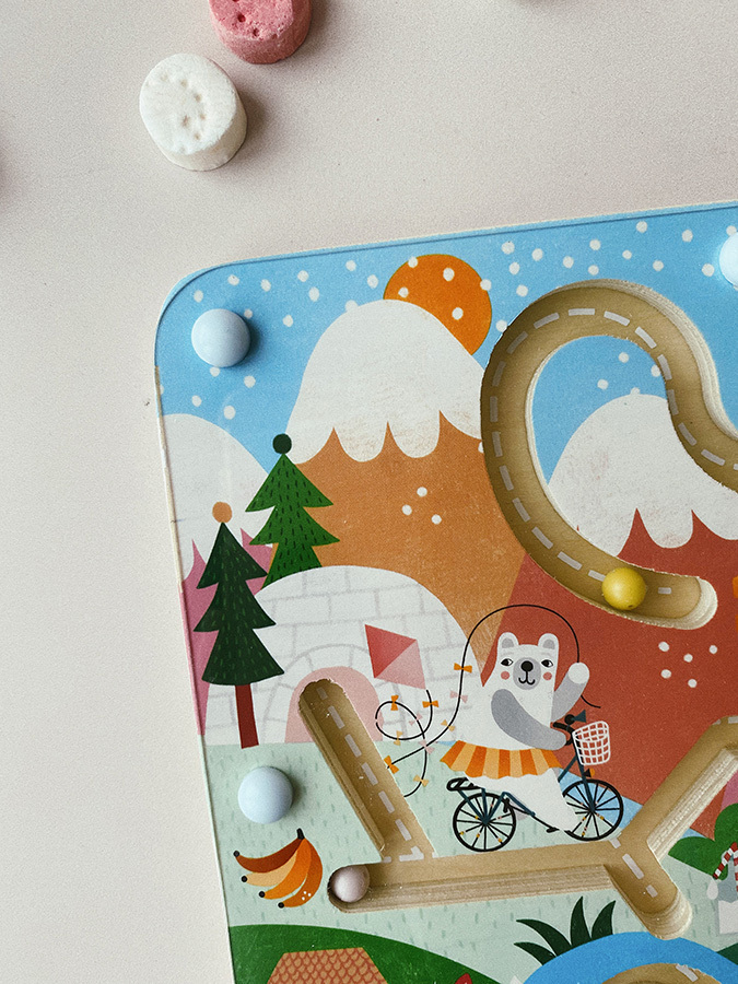 Uveďte děti do poetického světa s ilustracemi Michelle Carlslundové. Pomocí magnetického pera se mohou pokoušet přihrát jednotlivým zvířátkům jejich kuličky. Dostane pan kocour své mléko, bílé kuličky? Rozverná opička své banány, žluté kuličky? Komupak rozdat kuličky