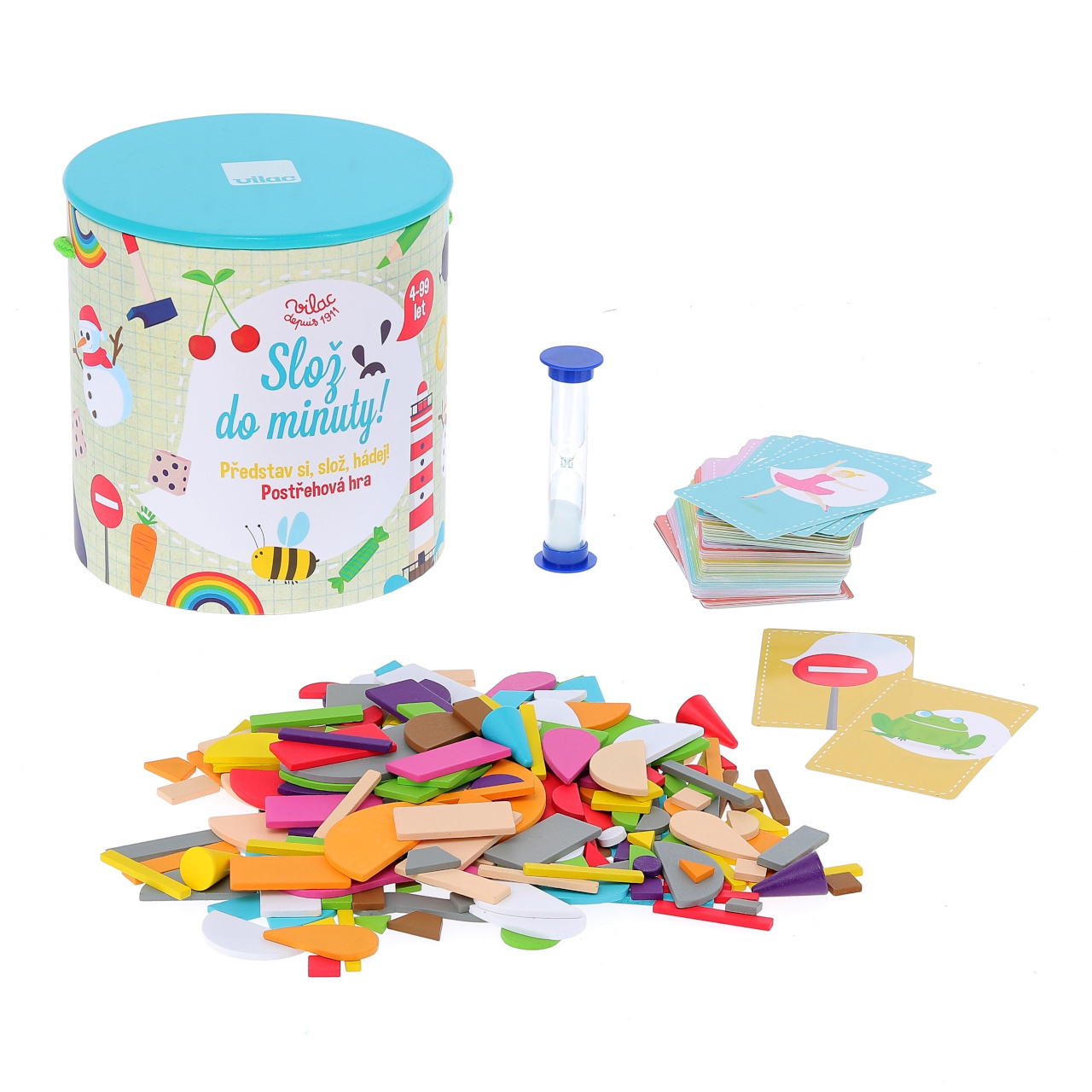 Zábavná hra, která rozvíjí dětskou představivost a postřeh. Vezměte si kartičku a z dostupných tvarů do minuty postavte obrázek. Hra pro všechny od 4 do 99 let. Podle věku hráčů můžete zvýšit čas pro řešení, nebo hrát bez časového limitu. Hra je spolu českým