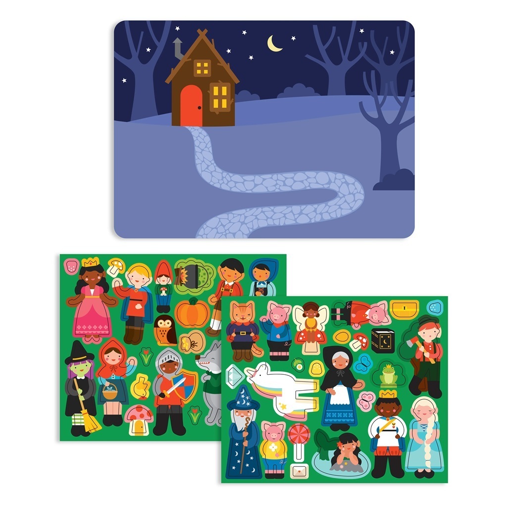 Tato přenosná sada her obsahuje 47 magnetických dílků a dvě magnetické tabulky, z nichž si můžete vybrat. Lze použít jako divadélko. Magnetickou scénku můžete i postavit díky zarážkám v krabici. Tvořte vlastní pohádkové příběhy ve dne nebo v noci. Můžete si vytvořit nekonečné kombinace scén....