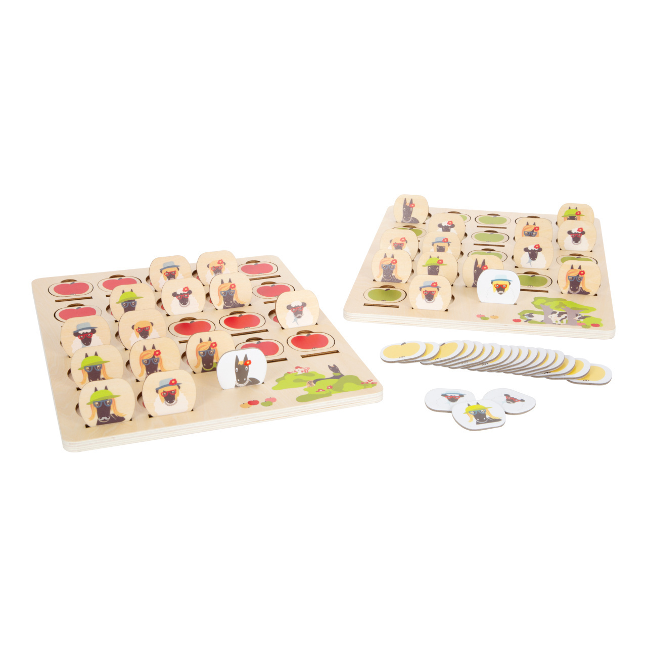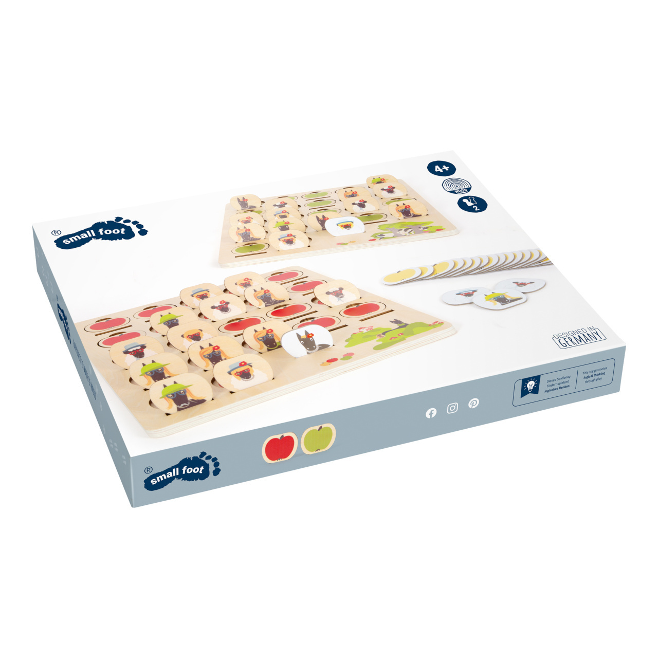 Kdo sebral jablka? S touto hrou může hádat celá rodina, budou vám stačit dobré pozorovací schopnosti, abyste co nejrychleji odhalili postavičku „4 přátelé“. Klasická hra je vyrobena z robustního dřeva a má design vhodný pro děti. V balení najdete 2 hrací desky, na