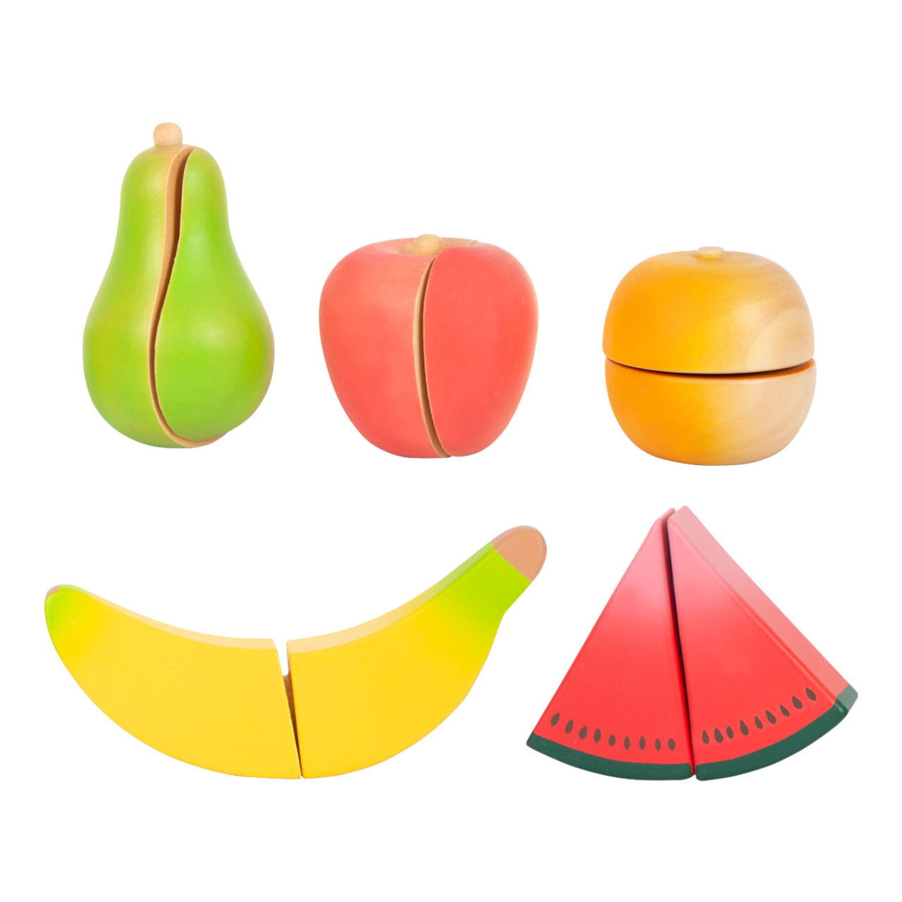 S touto sadou krájecího ovoce z robustního dřeva si mohou děti hrát na šéfkuchaře! Skládá se z běžného ovoce, které děti bez problému poznají. V balení prkénko na krájení, dřevěný nůž, znovupoužitelný obal, který lze použít k úschově hračky. Na jednu stranu