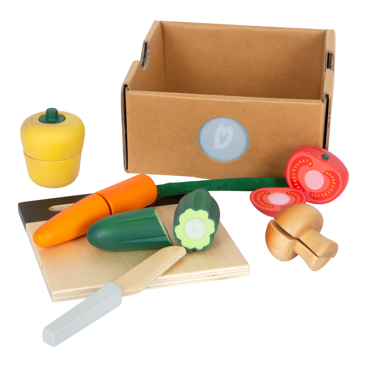 S touto sadou krájecí zeleniny z robustního dřeva si mohou děti hrát na šéfkuchaře! Skládá se z běžné zeleniny, kterou děti bez problému poznají. V balení prkénko na krájení, dřevěný nůž, znovupoužitelný obal, který lze použít k úschově hračky. Na jednu