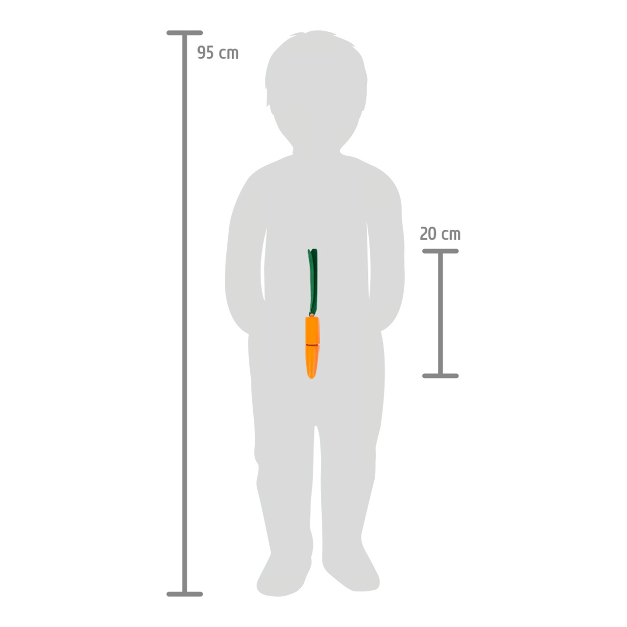 Rozměr krabice: 16x15x7, 5 cm Délka mrkve: 22 cm, Ø 2 cm Materiál: dřevo, karton, textilie Věk: 3+