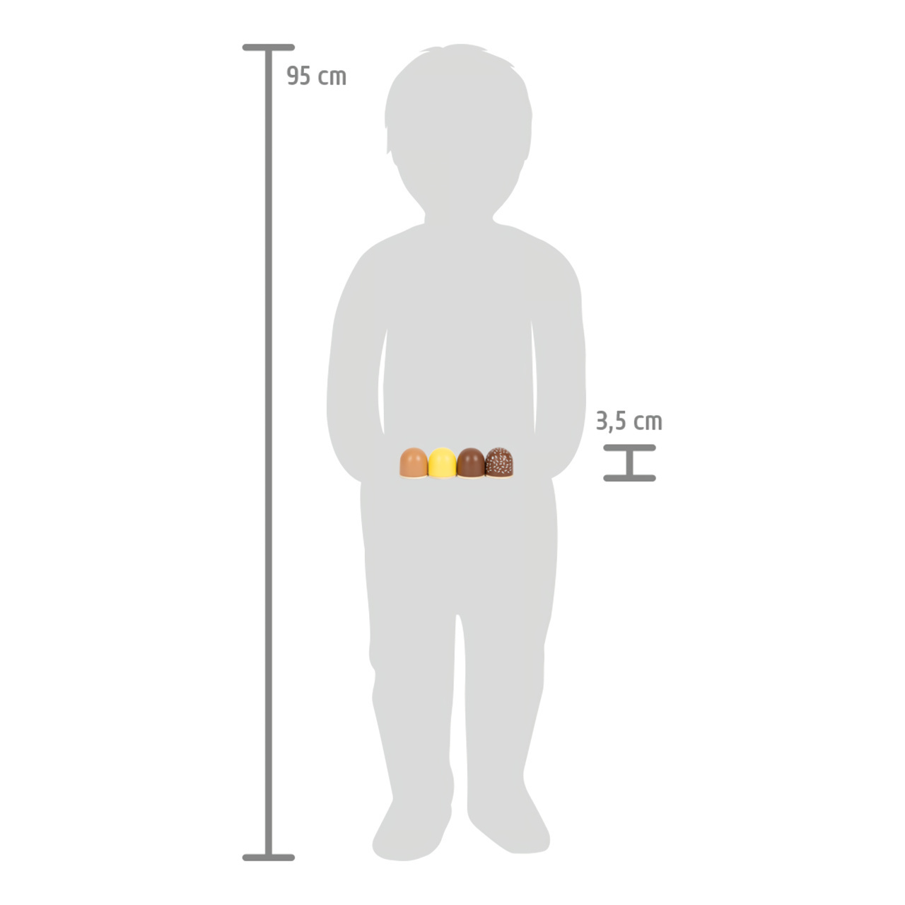 Rozměr krabice: 8x8x4 cmRozměr pralinky: výška 3,5 cm, Ø 3,5 cm Materiál: dřevo, karton Věk: 3+ Obsahuje: 4 ks pralinek