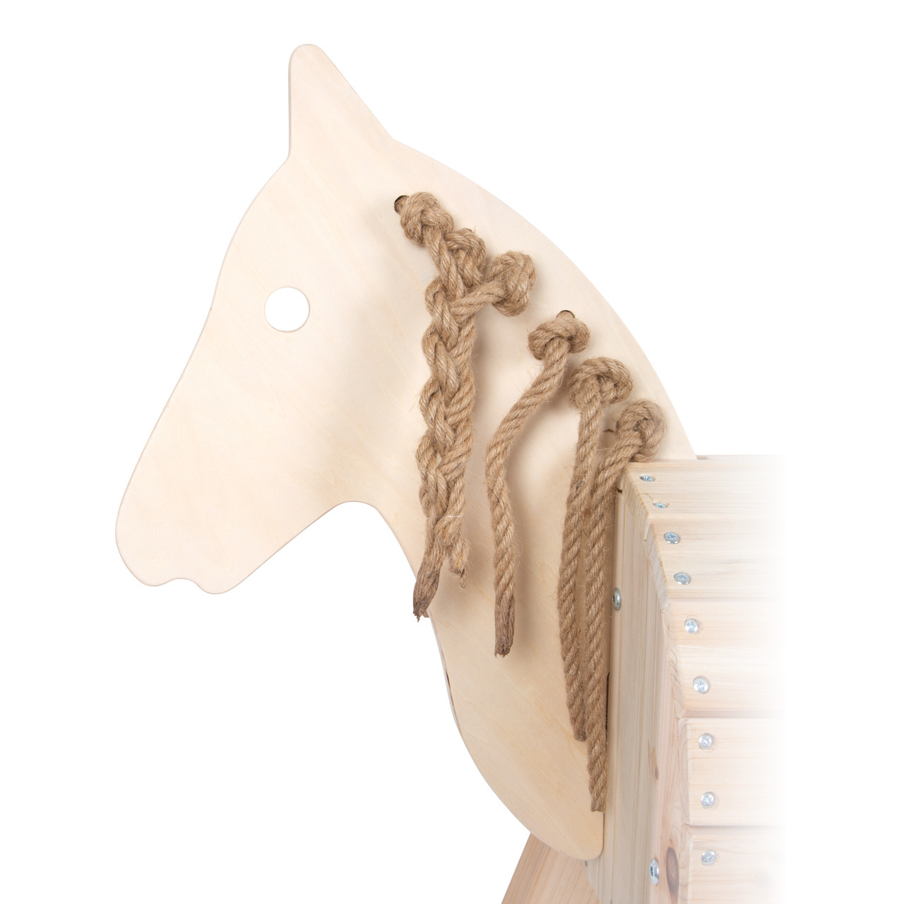 budou moci vyskočit bez problémů. Díky postavení nohou je kůň stabilní, úložný prostor má dvířka a vejde se do něj ohlávka i jiné vybavení. Sisalovou hřívu a ohon mohou děti zaplétat.Děti si často přejí vlastního koníka, s tímto dřevěným jim přání můžete