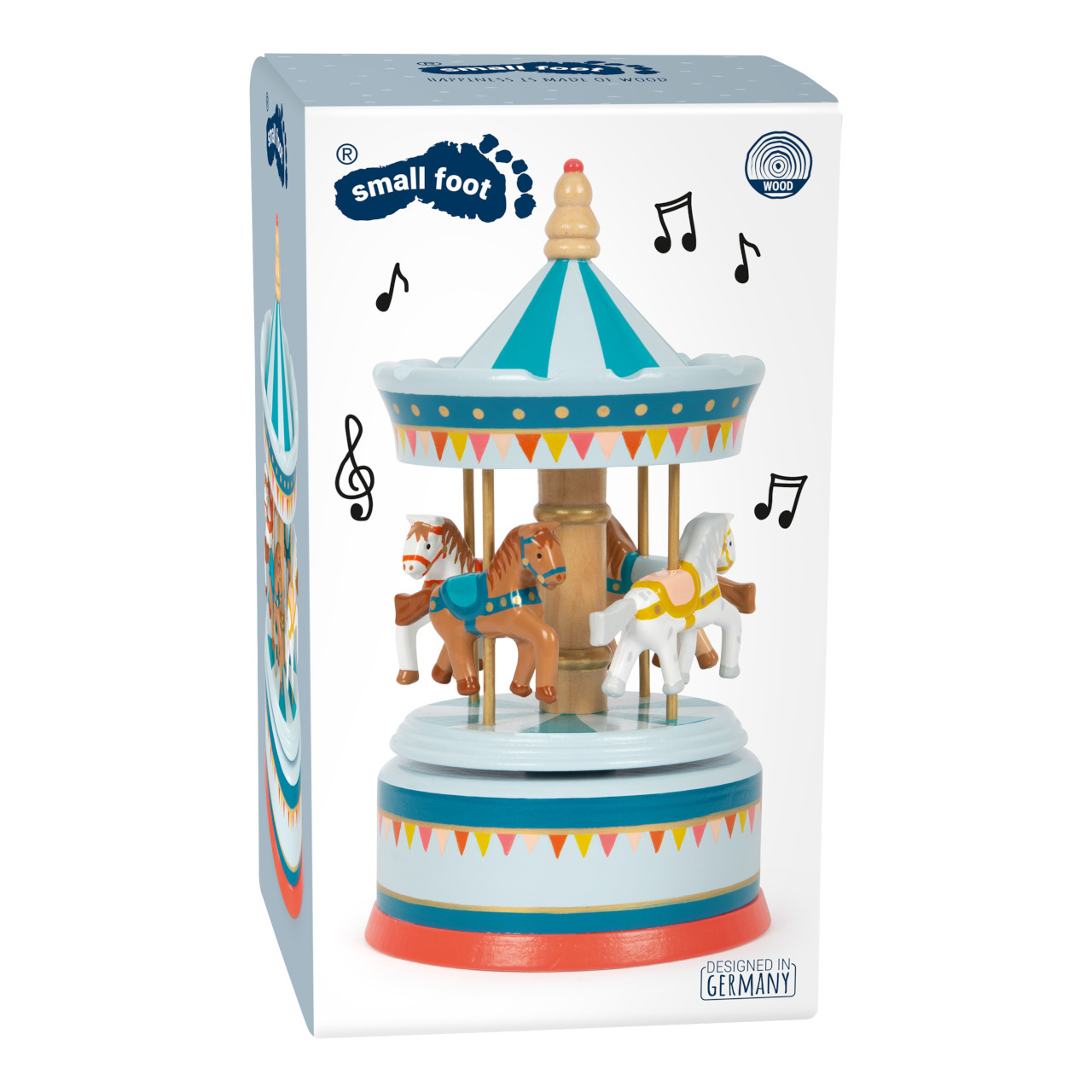 small foot Hrací skříňka koníčkový kolotoč modrý