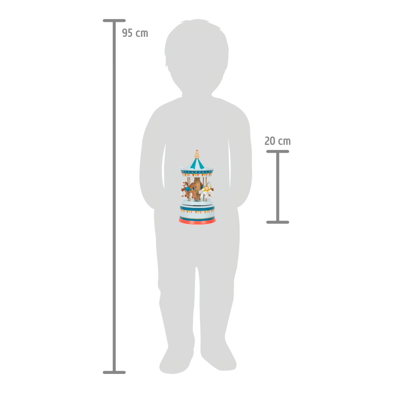 Cirkus nebo pouť? S touto hrací skříňkou můžete mít obojí! Klasický kolotoč s dřevěnými koníky se pohybuje v rytmu melodie „Pro Elišku“. Děti mohou hrací skříňku ovládat samostatně, má zaoblené hrany, které jsou perfektní pro bezpečné a jednoduché uchopení. Hračka má mnoho zlatých a barevných...